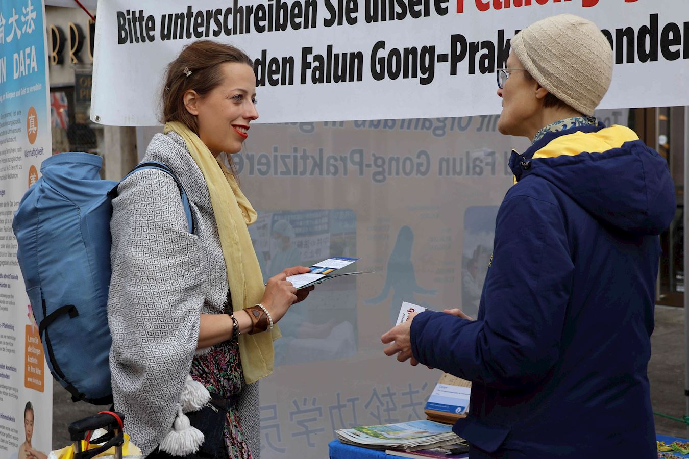 “真、善、忍太棒了!世界应该拥有更多真、善、忍。我很惊讶,自己居然不知道。”“我觉得每个人都应该遵循(真、善、忍),这是人们生活的目标。” “真、善、忍标示着希望,应该更多地在德国以及其他地方被展示,应该在所有的地方被珍视。”很多人虽然第一次获悉法轮大法,第一次听闻真、善、忍,但他们非常赞同和感佩。