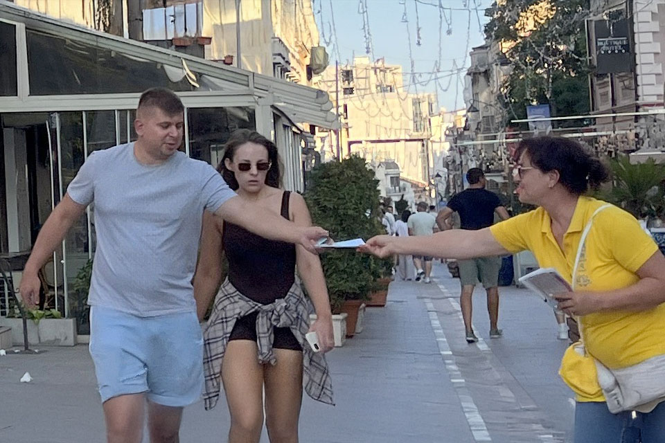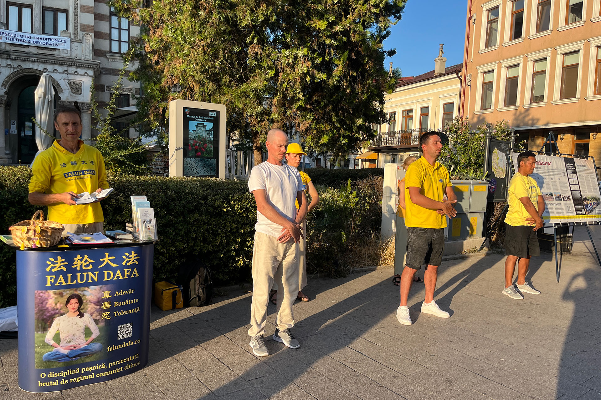![]() 图2:二零二五年八月十日,罗马尼亚法轮功学员在南埃福列举办信息日活动,向民众介绍法轮功和中共迫害的真相。 |