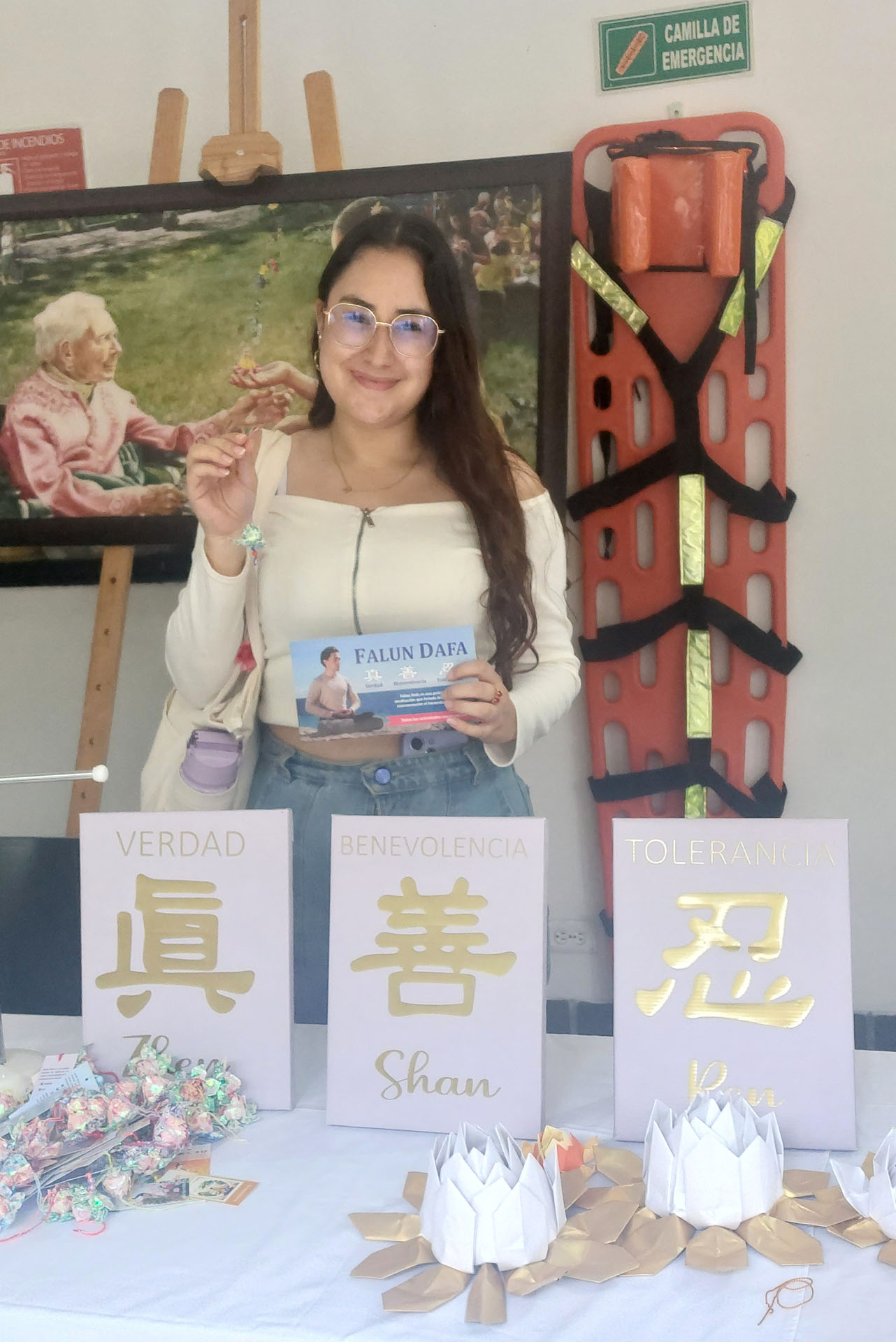 游客奥拉(Aura)说,在此之前她对法轮大法一无所知,但当她在活动中走到学员展位时,立刻感到一种特别的氛围。她说:“在这个集市上走着走着,突然看到这个展位,让我感到一种喜悦。”