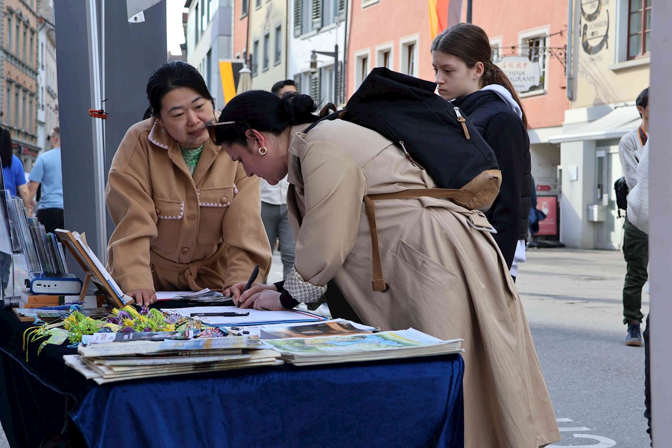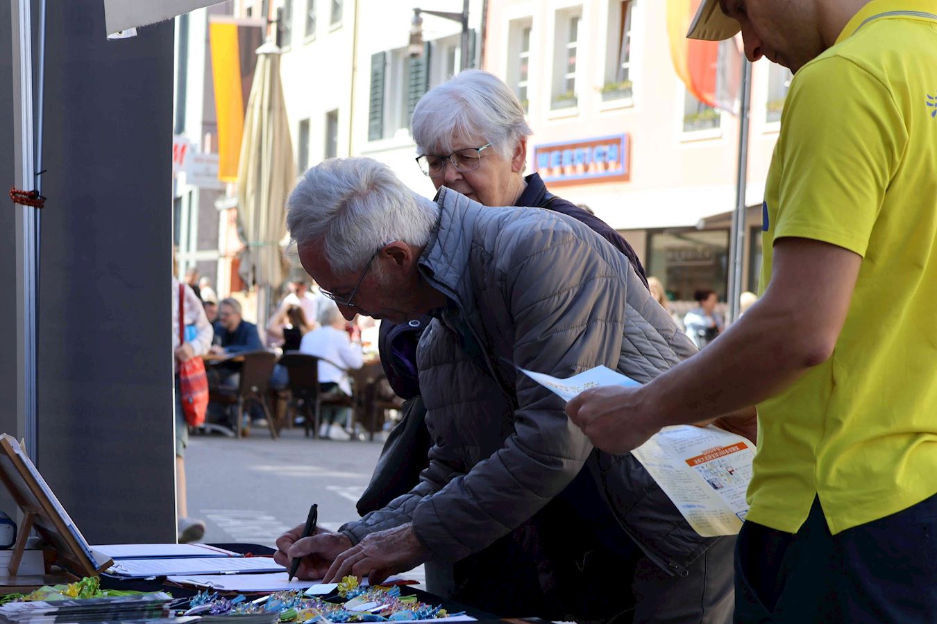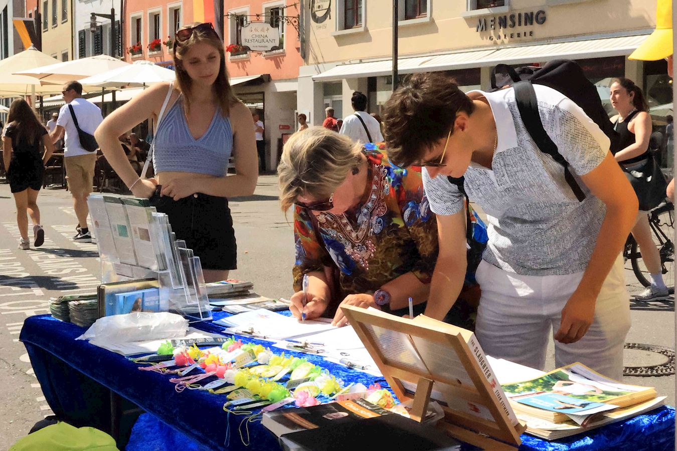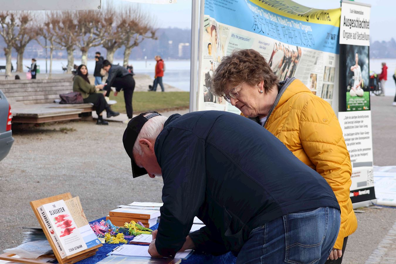 于是,在过去的半年里,明白了真相的路人在康斯坦茨渡船码头及市中心马克特广场(Marktstätte)签署了多份请愿书要求多国政府采取行动制止中共迫害法轮功及活摘器官的罪行。其中两份分别递交德国联邦政府及瑞士联邦委员会,还有一份将提交给G7+7共十四个国家。(G7为:加拿大、法国、德国、意大利、日本、英国及美国,+7为:阿根廷、澳大利亚、印度、以色列、墨西哥、韩国及台湾。)