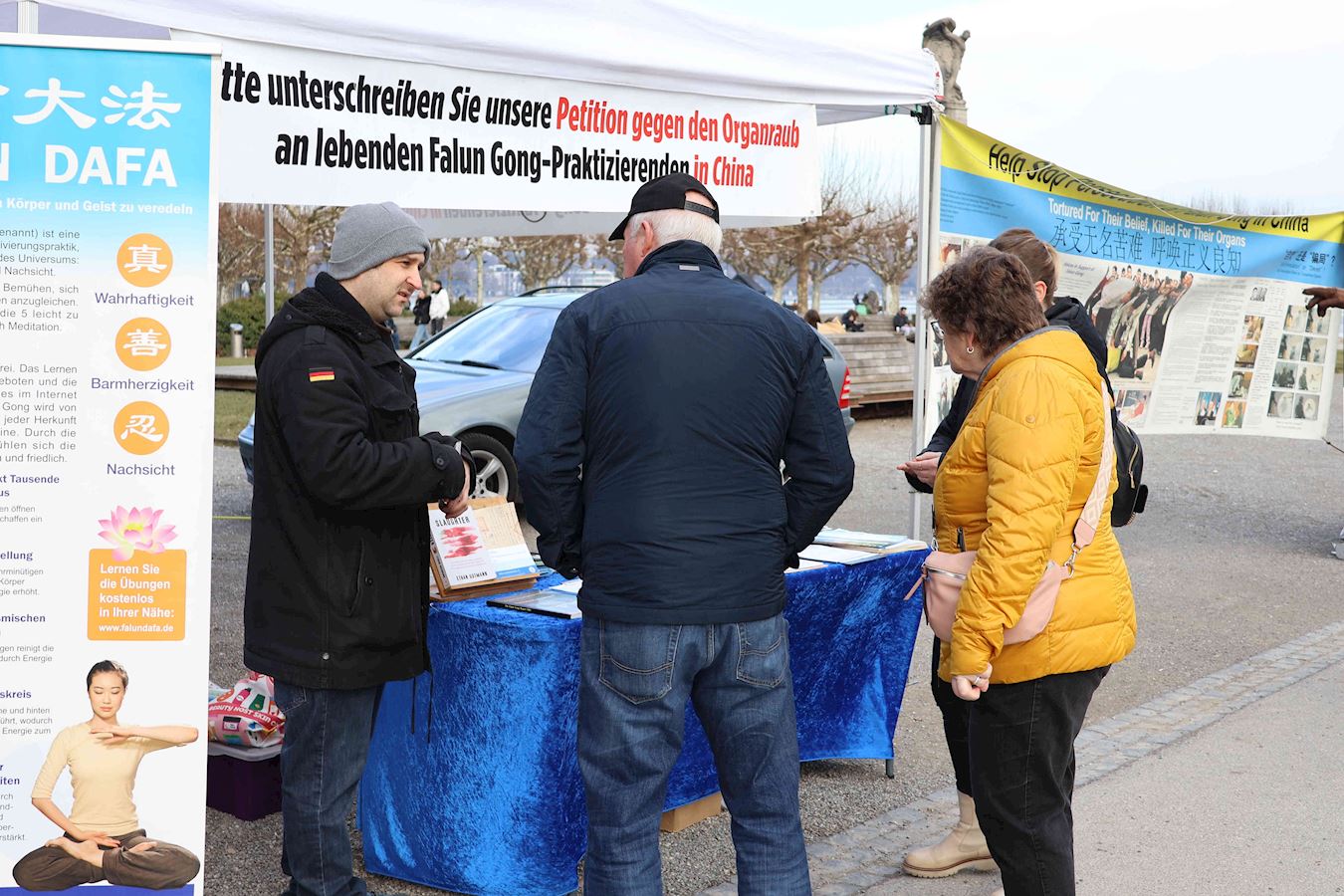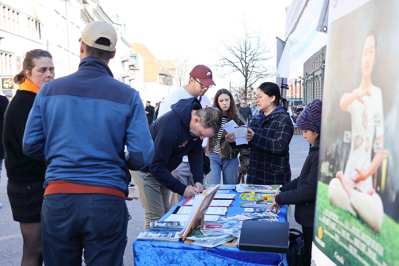 从二零二五年的二月至七月,其中十五个周六,法轮功学员在德国南部边境城市康斯坦茨(Konstanz)市中心的马克特广场(Marktstätte)设立的真相点上常会听到类似的反馈。很多路人或接过发送的真相资料,或向学员询问更多的讯息,或径直来到放着多份请愿书的小桌前,签名支持制止迫害法轮大法。