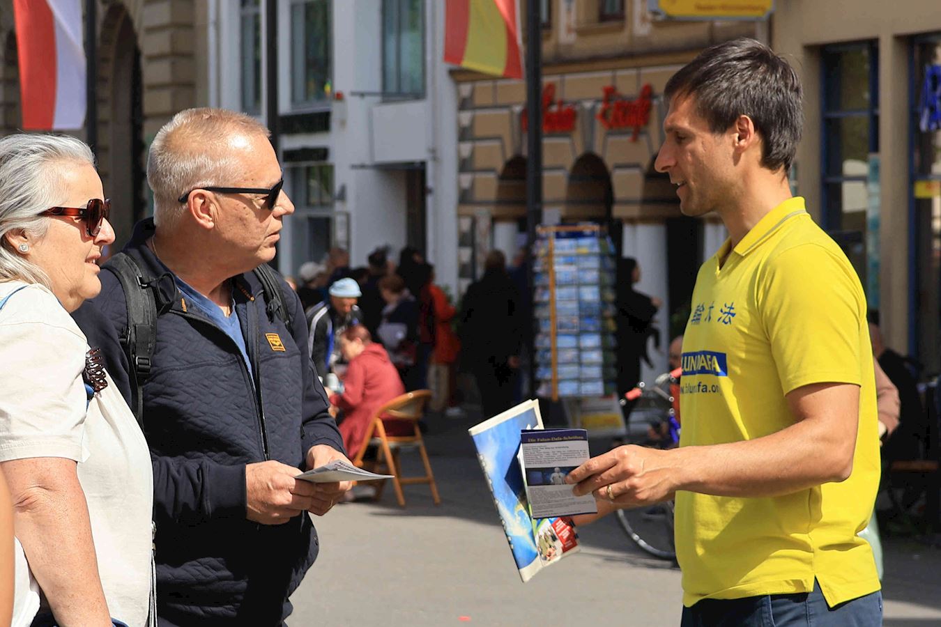 对共产党统治下的东德颇有了解的汉斯(Hans)告诉法轮功学员:“我相信你们说的一切。”他认为:“应该有更多这样的信息日,德国媒体不谈论这类话题,这是不对的。整个人类应该清醒起来,人们需要这些解说来引发他们的思考。我们来到了迎来新世界的时刻。”