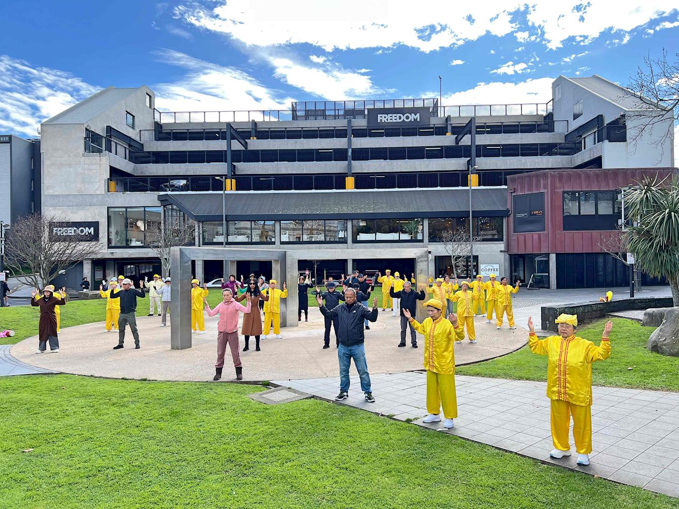 ![]() 图1~8:二零二五年八月二十三日,新西兰奥克兰法轮功学员在新市场的Lumsden Green公园炼功、集会,庆祝四亿五千万中国人退出中共党、团、队。 |