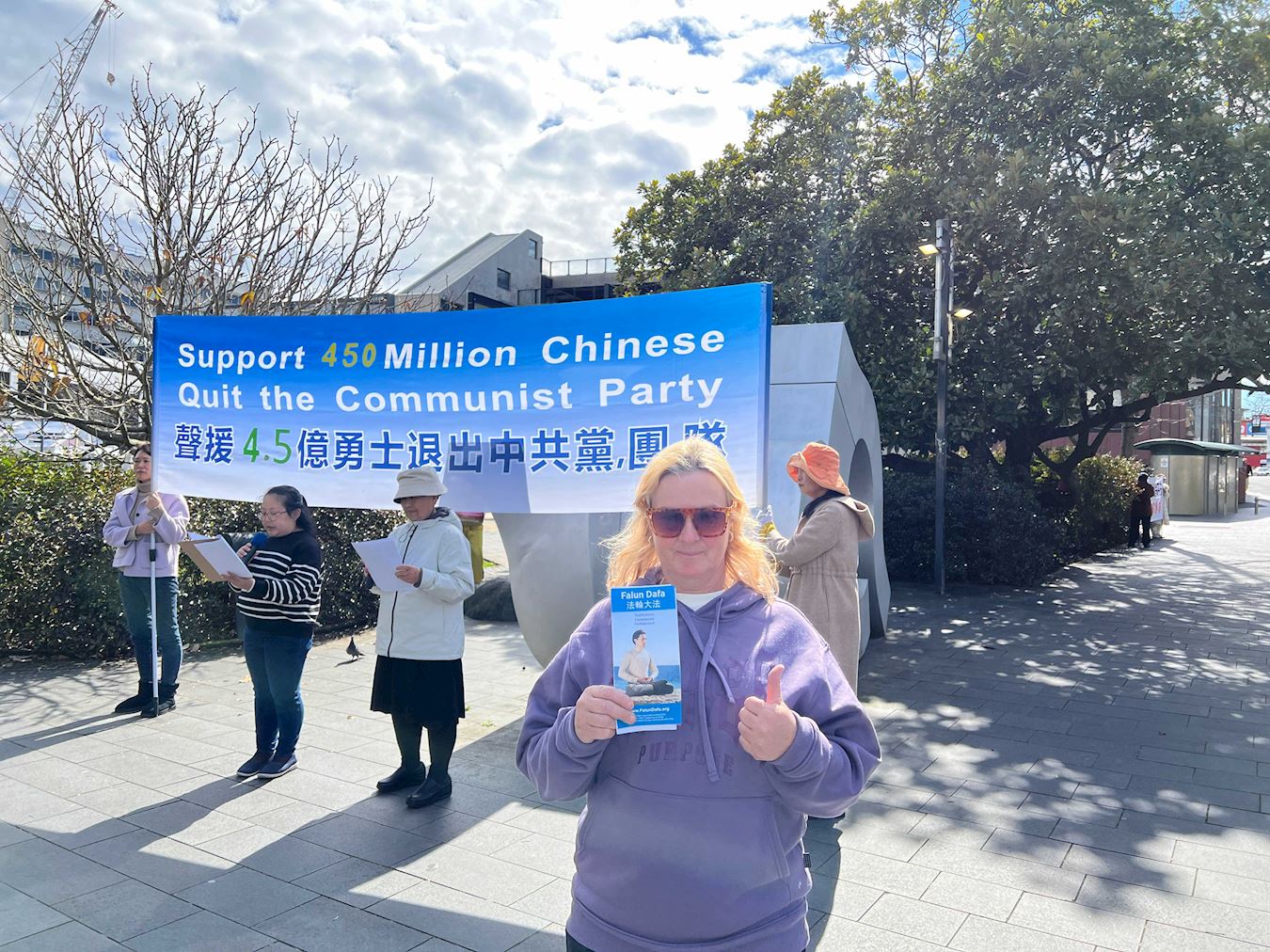 新西兰民众表示反对中共活摘人体器官牟利,希望迫害能够终止,让正义与善良得到延续。他们还表达了对中共迫害法轮功的谴责和对中国人退出中共的支持。