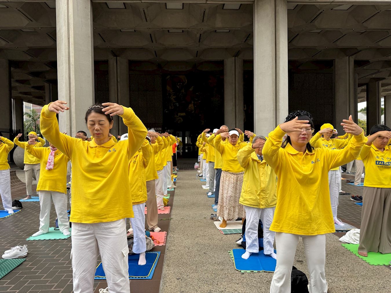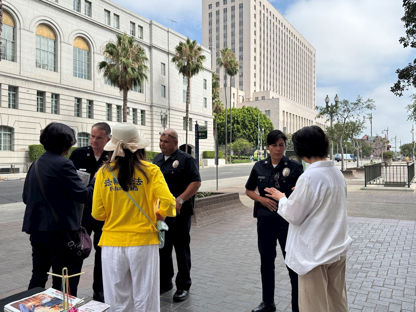 ![]() 图1~5:二零二五年八月二十六日,洛杉矶法轮功学员在市政府前平和展示五套功法,向往来民众讲述真相,同时呼吁美国各界人士一同制止中共的跨国镇压。 |