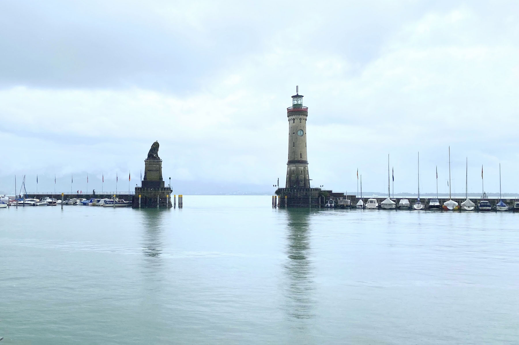 ![]() 图1:以阿尔卑斯山为背景的林岛港口,巴伐利亚唯一的灯塔与代表巴伐利亚的狮子雕塑。 |