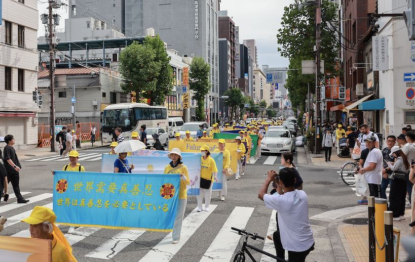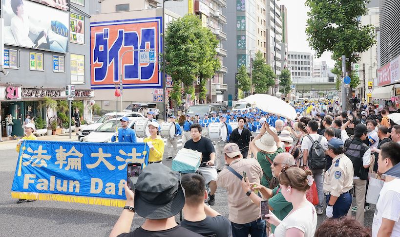 时值大阪万博会期间,又是三天的假期,来自日本国内和海外的游客络绎不绝。继九月十三日在神户举行游行后,九月十四日,法轮功学员来到大阪游行,同样受到了人们的欢迎。
