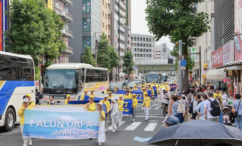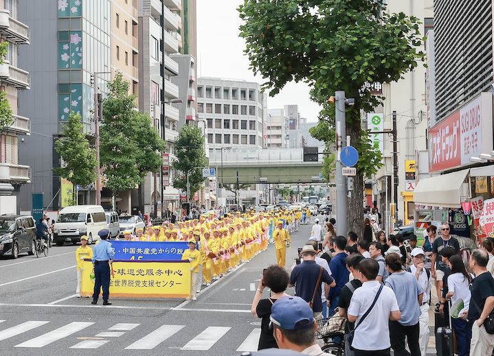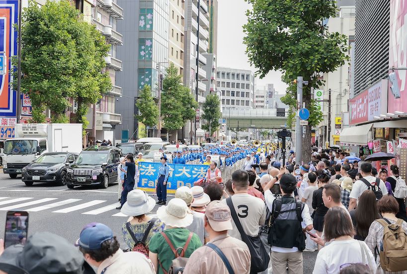 在游行中,很多来自欧美的游客微笑着挥手致意,也有不少表示“回去后会了解一下法轮功”并主动领取资料。此外,不仅日本市民反响热烈,中国游客的反应也发生了明显变化。很多人拿出手机相机,堂堂正正的拍照录像。