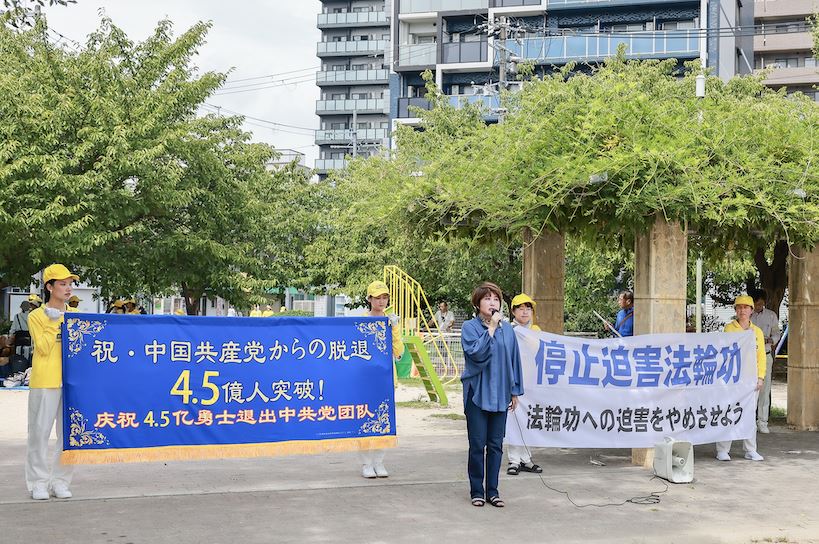 三重县四日市市议会议员荻须智之(Tomoyuki Ogisu)在致辞中呼吁:“我们日本人绝不能对邻国发生的如此罪恶行径听之任之!”他指出,去年日本首次有法轮功学员获难民认证,但要根本解决问题必须终止中共对学员的迫害。