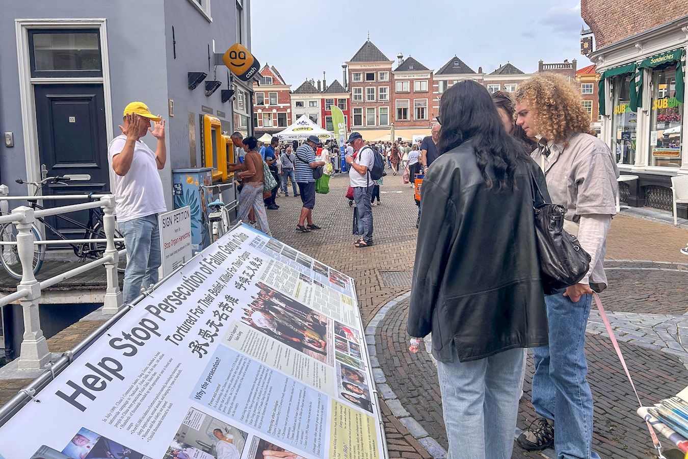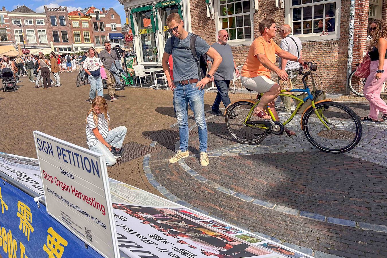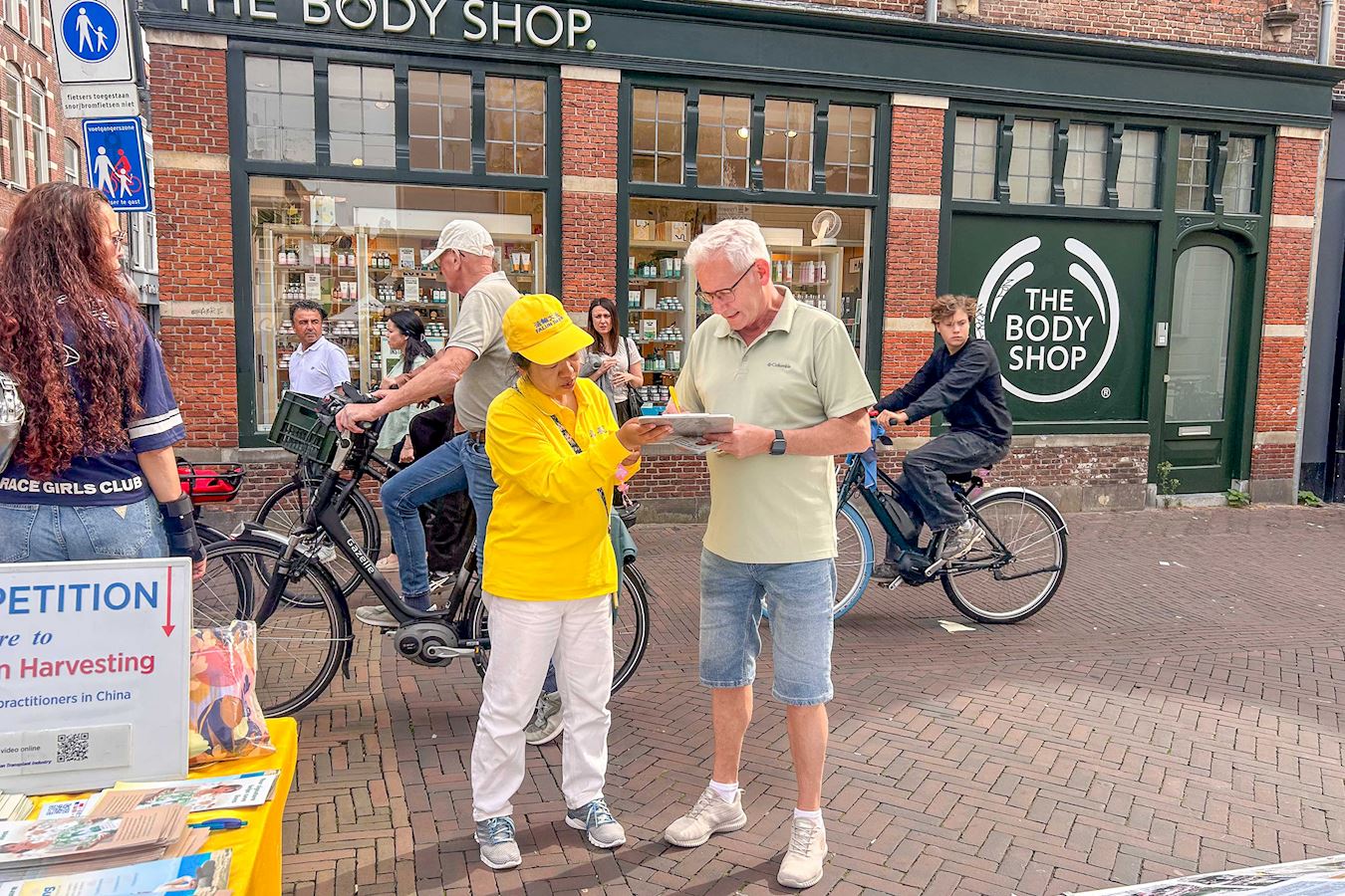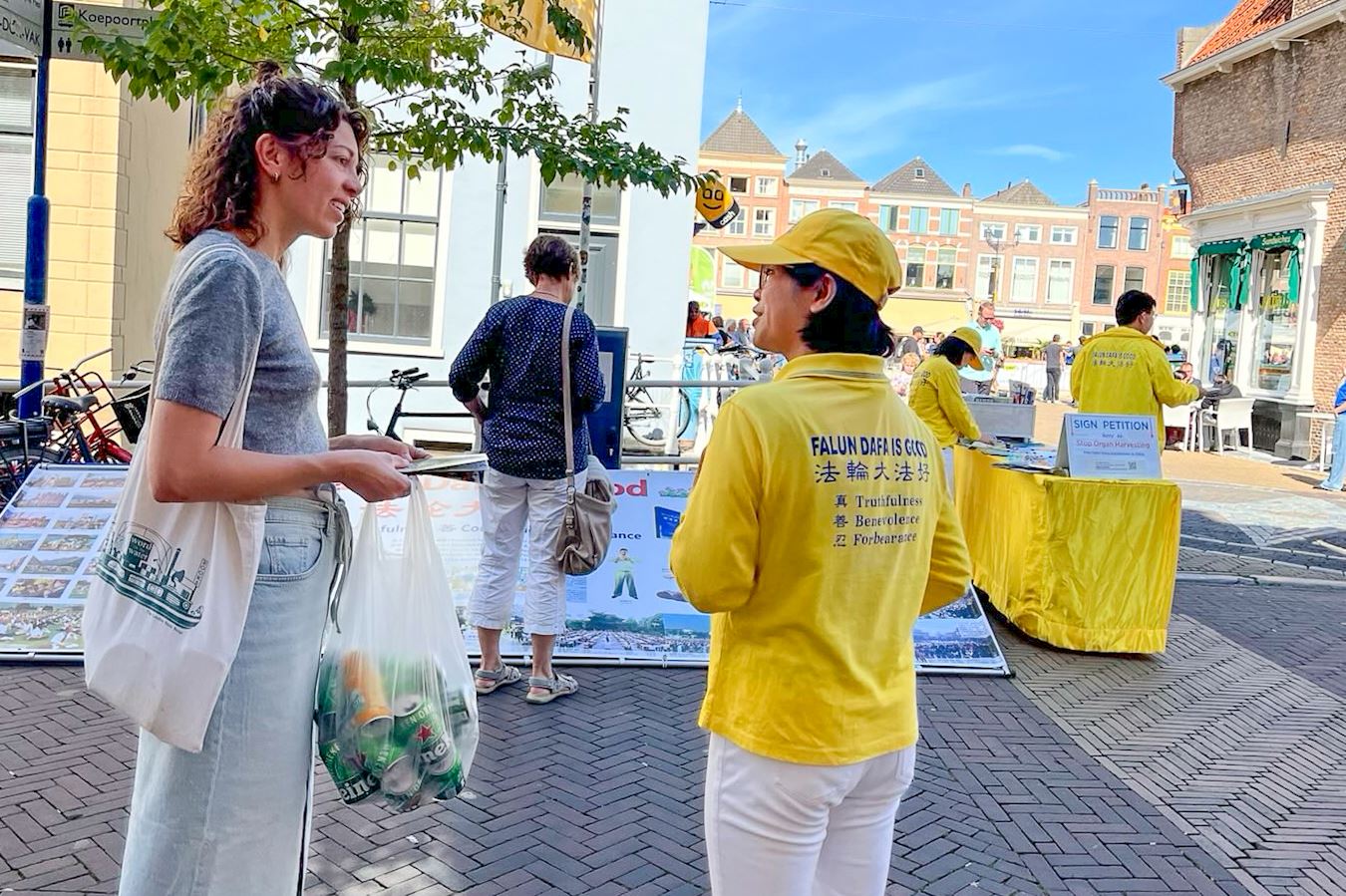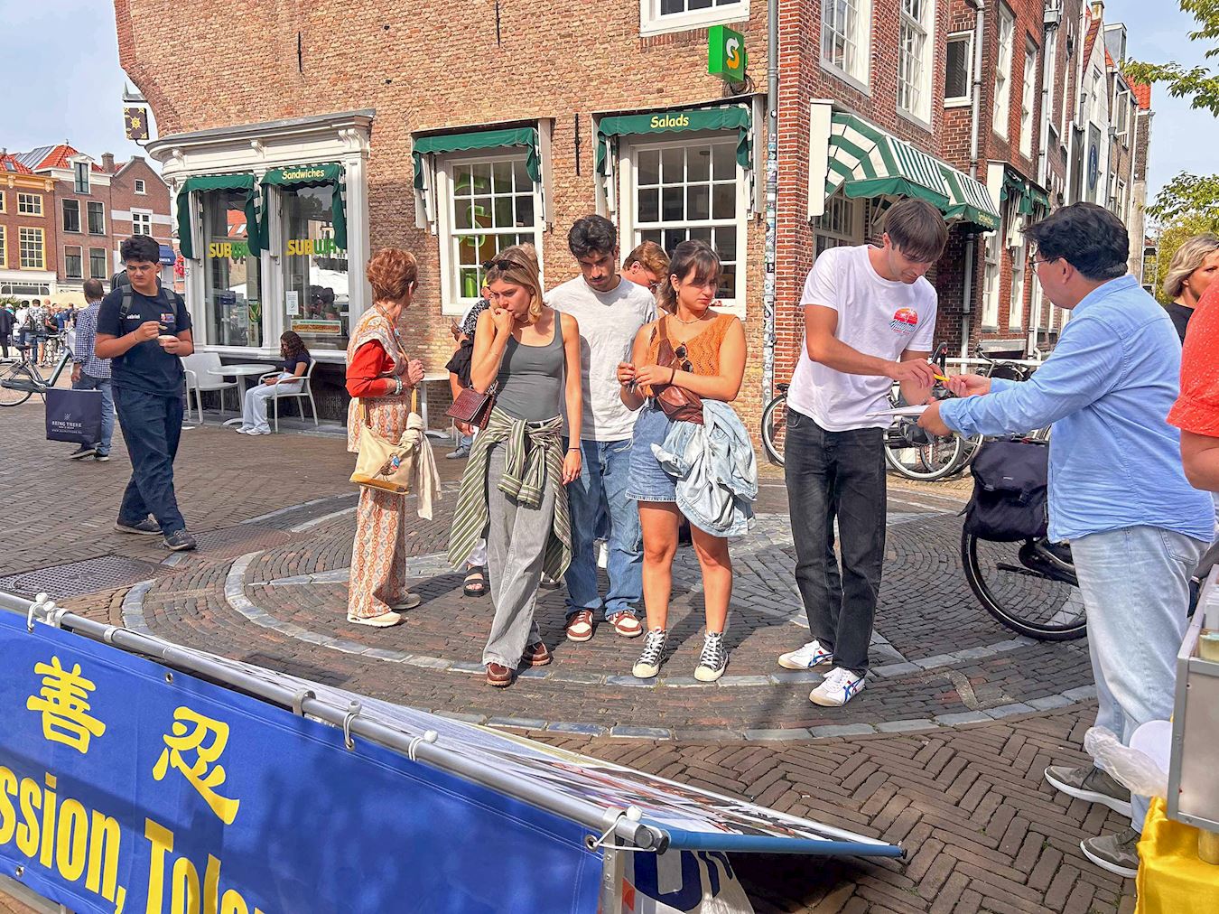 二零二五年九月六日星期六,荷兰巡回真相点来到荷兰西部的代尔夫特(Delft)传播法轮大法的美好,揭露中共对法轮功的迫害,受到民众欢迎。