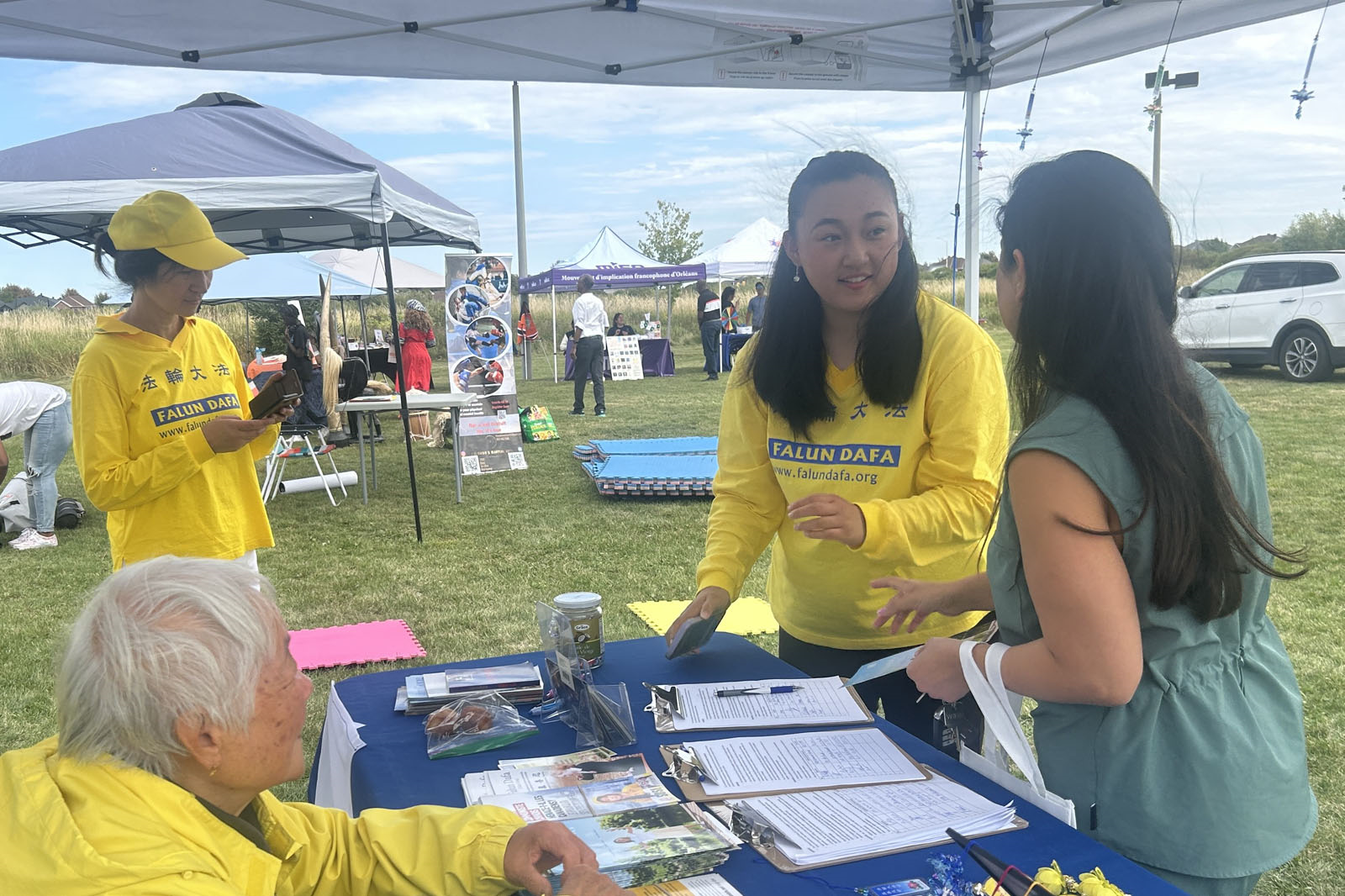![]() 图4~5:多元文化节当天,法轮功学员为民众免费教功。 |