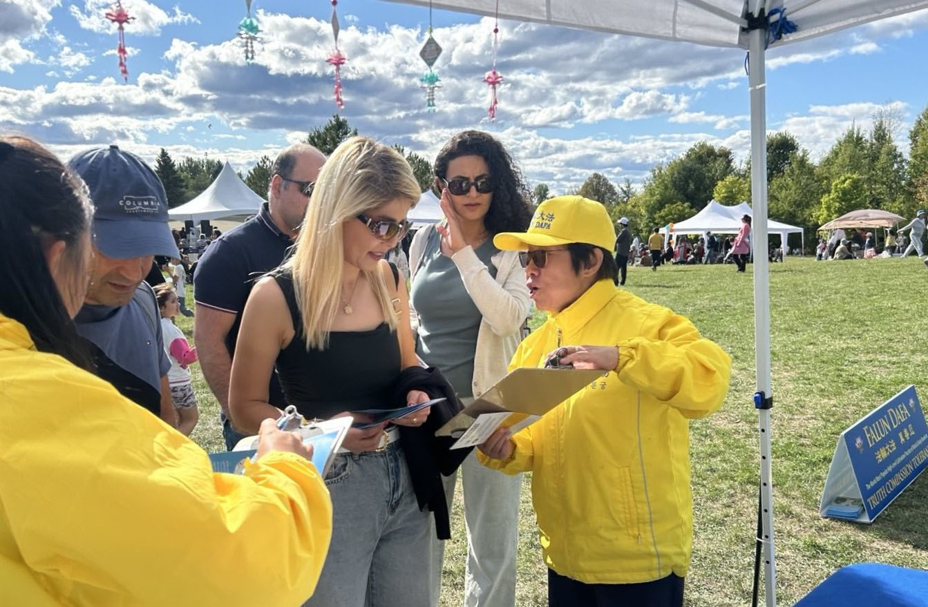 在法轮功展位前,民众了解到中共对法轮功长达26年的迫害,及其跨国镇压行动,包括在加拿大多地对神韵演出进行恐吓与威胁。许多民众在请愿信上签名,呼吁国会立法制止中共的跨境打压。