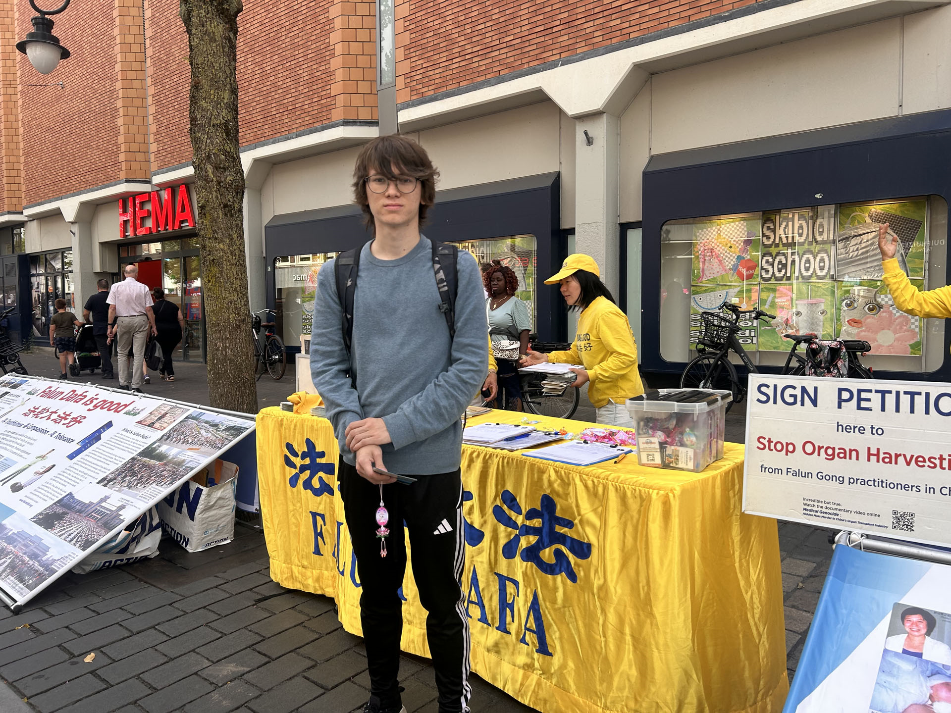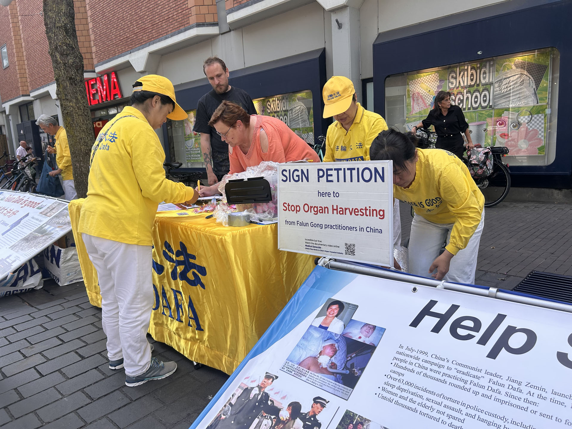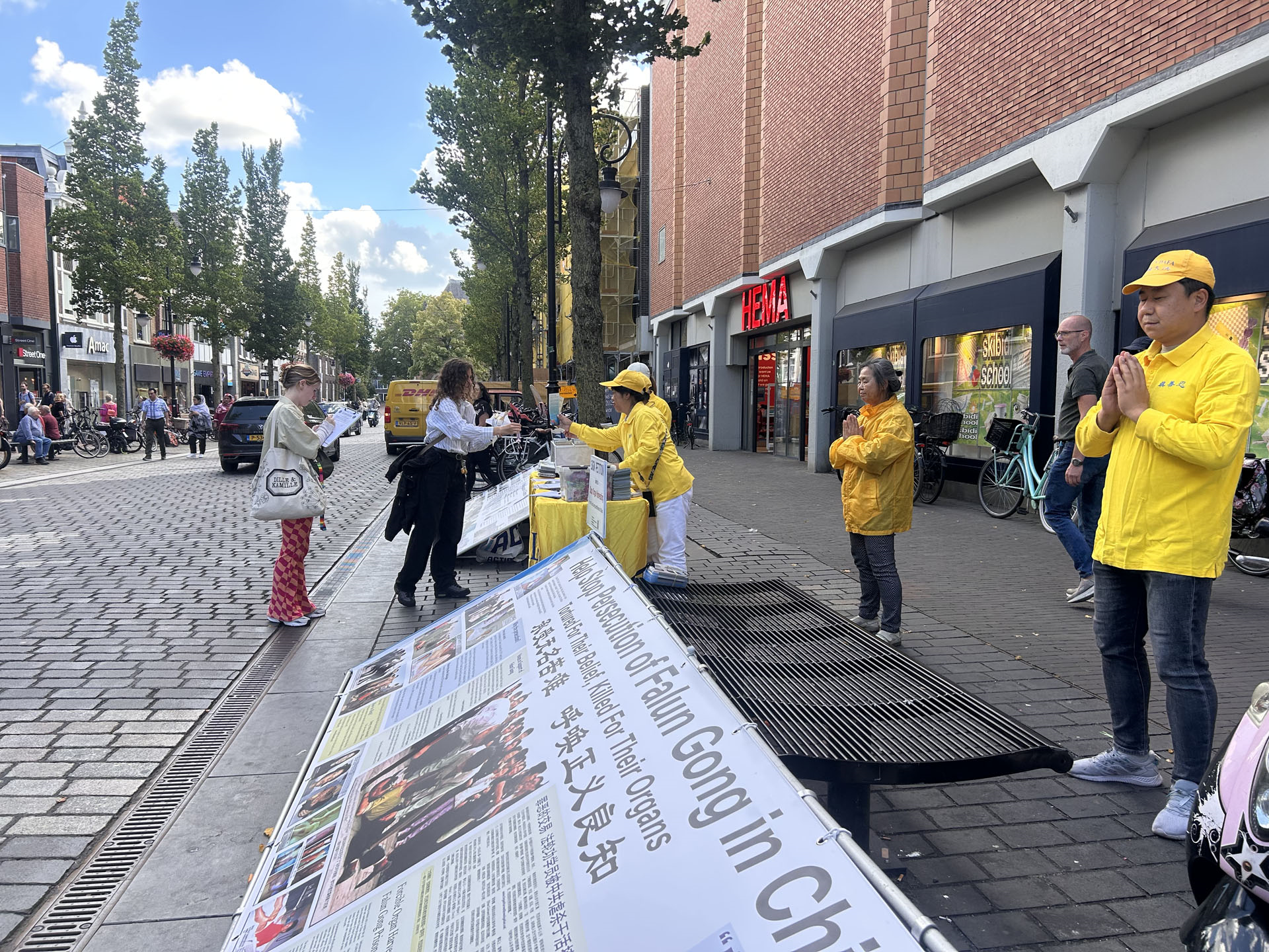 星期六午后,学员们在多德雷赫特市商业中心布置真相展板,展示法轮功功法,发放传单,征集反迫害签名,吸引络绎不绝的行人驻足了解。善良的多德雷赫特居民听闻法轮功修炼者在中共统治下的中国无法自由修炼,至今仍在遭受残酷迫害时,纷纷在向G7+7国家提交的请愿书上签名表达支持,甚至在征签桌前排起了队(注:G7国家为美国、加拿大、法国、德国、意大利、日本、英国,+7国家为阿根廷、澳大利亚、印度、以色列、墨西哥、韩国及台湾)。