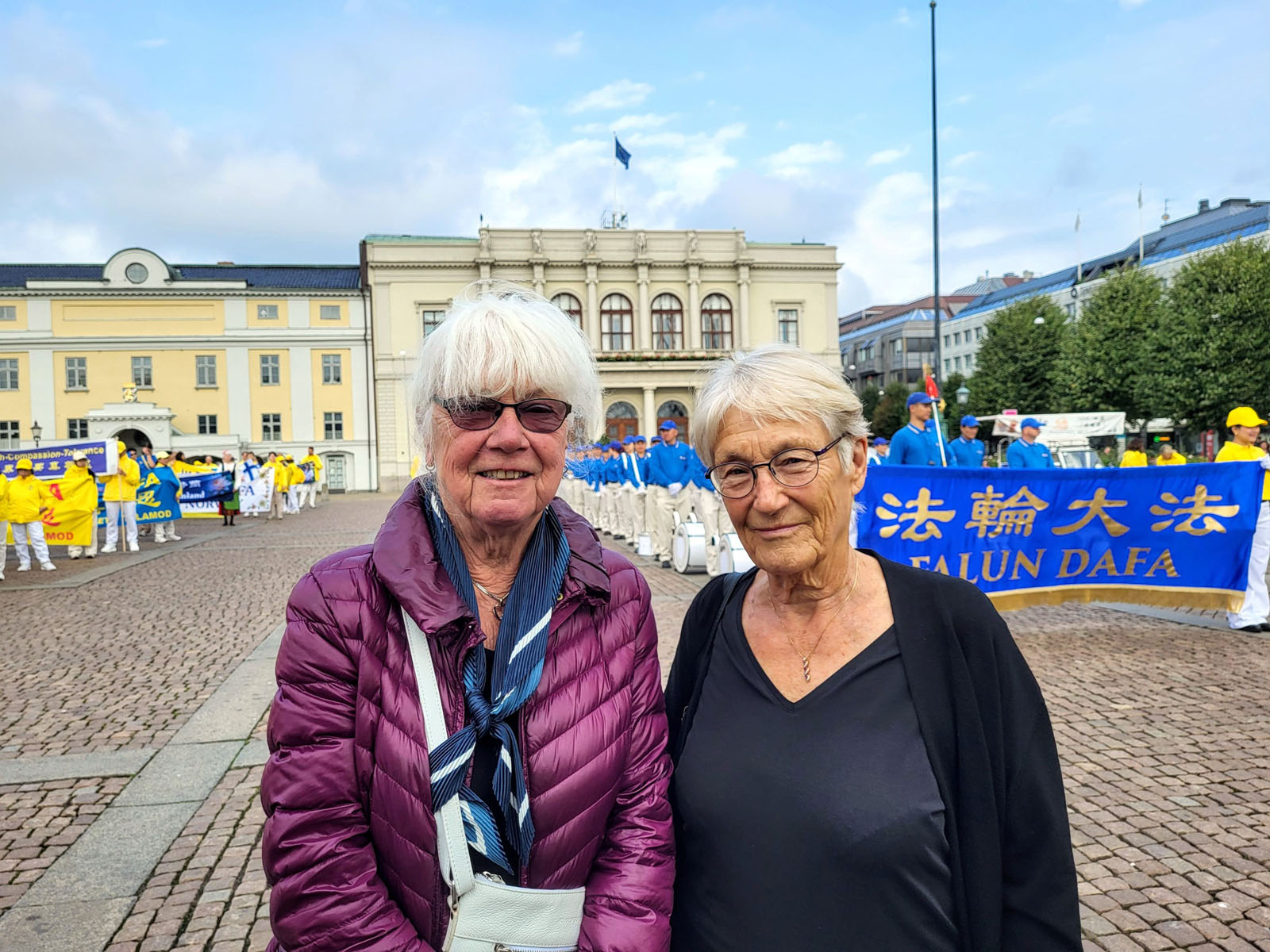 在活动现场,居住在歌德堡的八十岁的洛塔(Lotta)女士和七十六岁的克里斯特尔( Kristel)女士一起观看天国乐团演奏,并喜形于色地交谈着。克里斯特尔表示自己开始了解法轮功已经二、三年了,并且通读《转法轮》两遍和坚持炼功。克里斯特尔表示:修炼法轮功让她保持健康,虽然书的内容很多,但值得反复阅读。