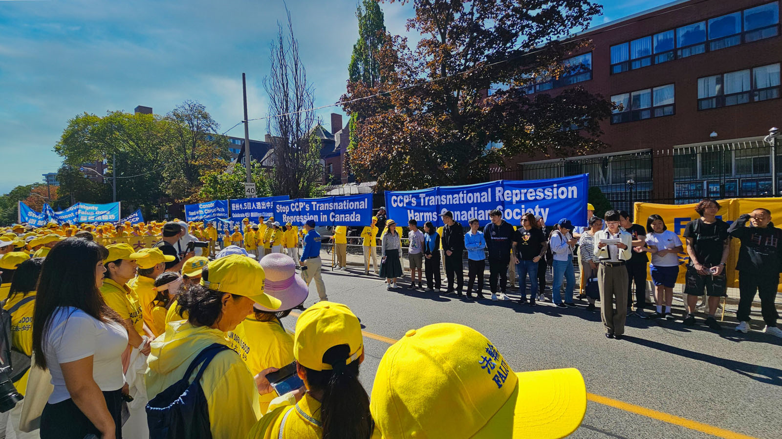 中国民主党加拿大委员会理事刘岩在集会上发言,他说:“我们有权利自由地表达观点;我们有权利追求真、善、忍的信仰;我们有权利批判独裁;我们有权利反对中共;我们有权利享受自由、民主和生而为人的尊严。”他呼吁各界团结起来,反对中共的渗透,反对跨国镇压,捍卫自由。