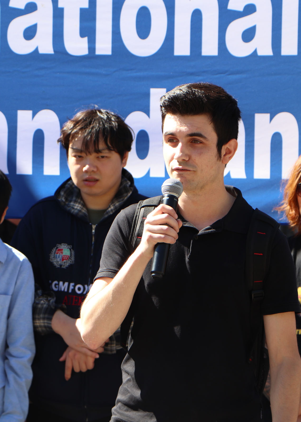 ![]() 图7:法轮功西人学员博格丹在集会上发言 |