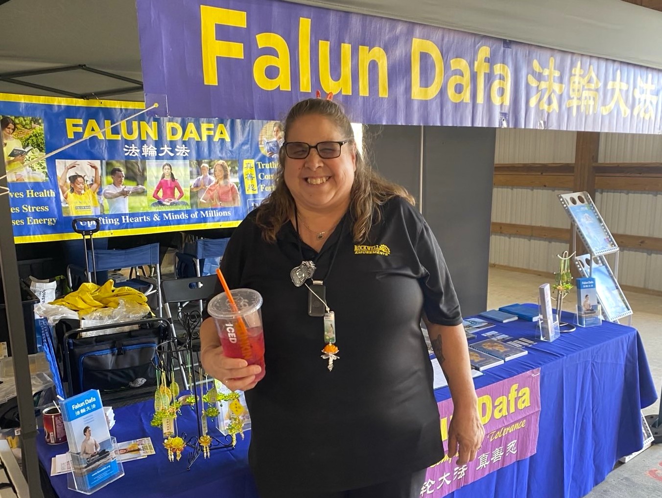 马凯拉(Makayla)是一位住在当地的年轻女孩,路过展位时被学员现场的功法演示所吸引,当场学了第一套功法,感觉非常舒服、能量很强,并留下了联系方式,她表示未来想继续学炼法轮功。