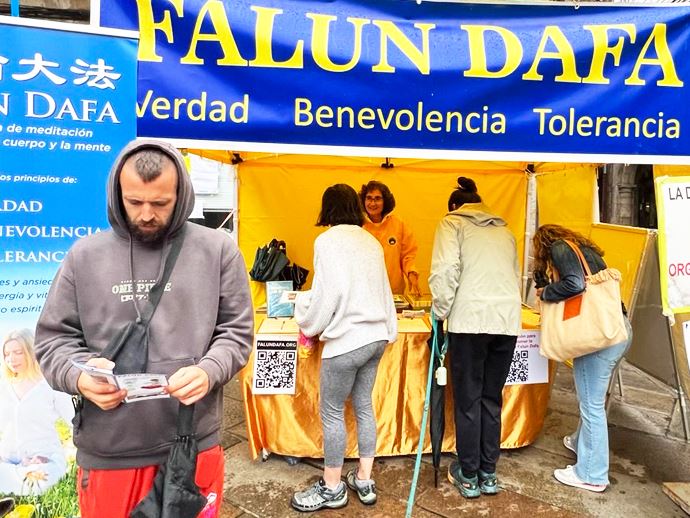 贝古娜(Begoña)女士是附近的居民,目前已退休。她仔细阅读了揭露迫害的展板,主动上前询问是否可以给展板拍照以分享给亲友,如果亲友们想签名在哪里可以签名?学员一一回答了她的问题。关于中共对法轮功的迫害尤其活摘器官的前所未有的邪恶,她连连表示:“这太恐怖了!”她说,她对与人权相关的议题一向关注。先前知道中国发生一些侵犯人权的事,但不知道对法轮功的迫害如此惨烈。