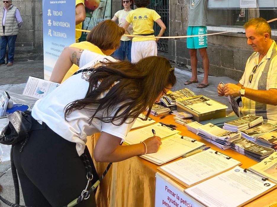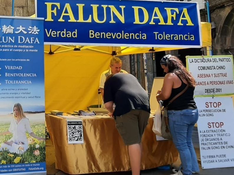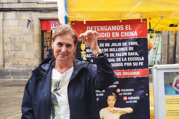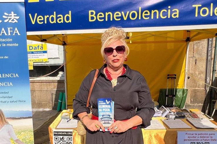 克里斯蒂娜(Cristina) 是加利西亚村镇的居民,在和学员的交谈中,她说:自己对气功、太极方面很感兴趣,但是在九十年代的西班牙,没有人传授心法。她向学员确认法轮功就是法轮大法。因为八年前的一次前往中国的旅行中,她曾经听一位修炼法轮功的女士告诉她,中共政权不允许精神信仰的存在。因此当她看到真相展板上的法轮功学员被中共残酷迫害的图片后,立刻签名表示支持法轮功反迫害。