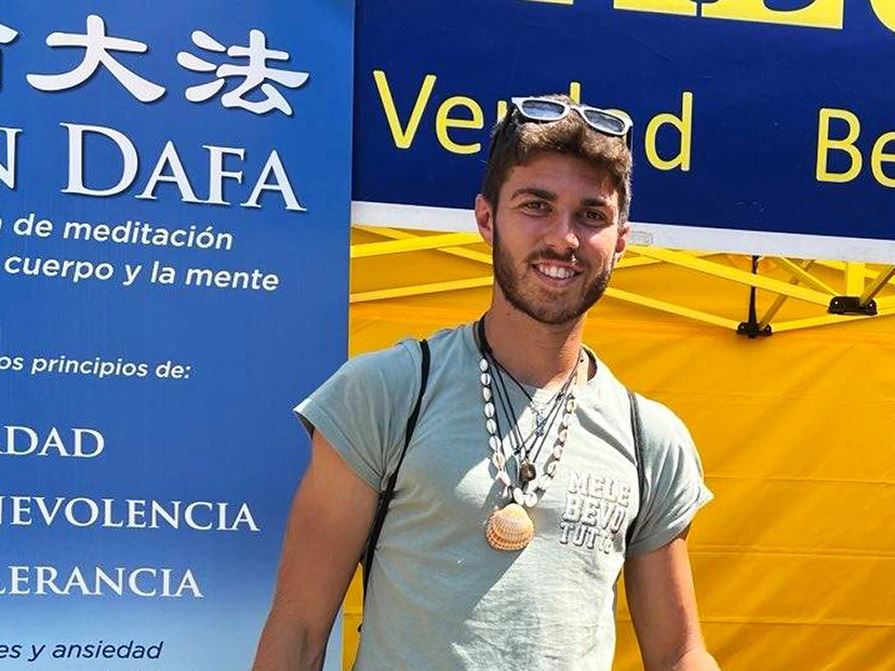 来自意大利的小伙迪艾古(Diego)今年二十三岁,目前在圣地亚哥走“朝圣之路”。他路过法轮功学员的活动场地,了解到法轮功学员由于信仰真、善、忍和坚持打坐修炼法轮功而在中国受到酷刑折磨和非法逮捕。他表示:自己也是冥想(打坐)爱好者,不能理解为什么法轮功会受到迫害。