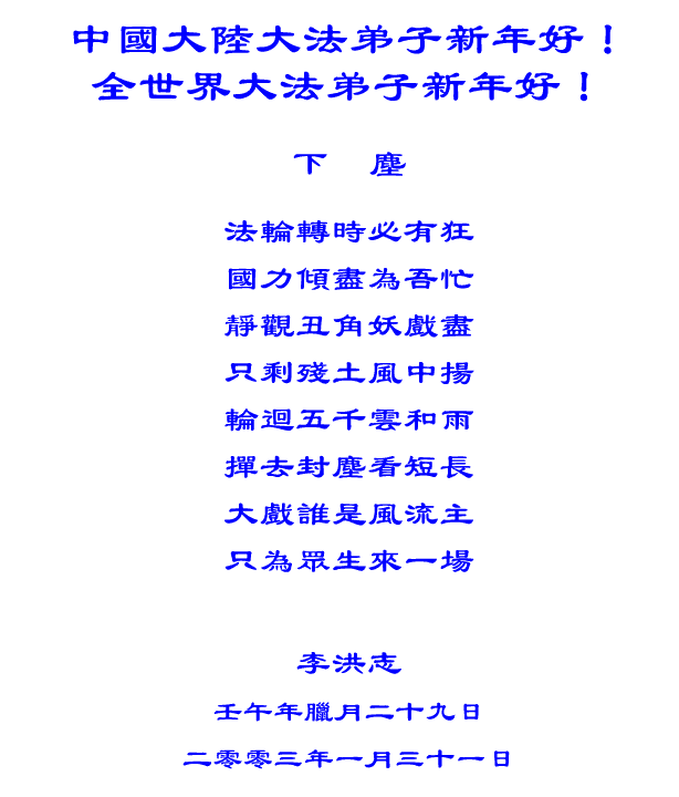 | 师 李洪志 壬寅年腊月廿九日 二零二三年一月二十日 |