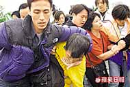 【明慧网2000年12月21日】 法轮功学员在澳门示威遭镇压。 凌树辉摄【苹果日报记者澳门专电】在澳门回归一周年前夕,来自香港、海外及澳门本地的数十名法轮功学员,在市区多处地方分别举行示威请愿,抗议中国当局镇压法轮功活动,但澳门治安警察、司警及情报科探员全面出动,联手以强硬手段制止,结果在国家主席江泽民的专机降落澳门机场四十五分钟之前,所有请愿浪潮均被「消灭于萌芽状态」。 (记者:黄汉军) 澳门民主派立法会议员吴国昌批评当局在敏感时刻加强镇压反对声音,严重侵犯人权,令澳门形象受损。去年澳门回归日,法轮功学员也曾举行过集体请愿行动,但迅即被警方镇压,昨日他们改变策略,采取游击战术分头出击,企图突破封锁。 场面极为混乱 昨日中午时份,三名日前已抵澳的香港法轮功学员周胜及王翠明联同来自新西兰的廖丽兰和澳门的蔡瑞荣,在寓所举行记者会后,分乘两辆的士前往外港码头,准备与由香港抵澳的学员会合举行练功及请愿活动,但半途其中三人被警员截停,强行拖下车带往交通部问话,另两人成功抵达码头,不过,当他们在码头接受记者访问时,大批便衣人员上前阻拦并强行将两人带走,在场数十名记者追问便衣人员身分,但各人均不予透露,双方纠缠之间,多名记者被推撞跌倒,有记者更被反指「袭警」,场面极为混乱,最后两名法轮功学员遭强行拖进入境处禁区内,同时,由香港抵澳门的多名香港法轮功学员亦被拒绝入境,原船遣返香港。下午三时许,澳门法轮功学员林逸明及其妻女带备横额标语,准备前往回归庆典场地文化中心请愿,但刚下楼不远也即被警察阻拦,强行没收标语及将三人推上警车带走。 探员一涌而上 此时,在葡京对开的圆形地及公园侧,亦有数十名法轮功学员练功并要求向江泽民请愿,当他们脱去外衣露出印有法轮功标语的黄色T恤时,早已在场守候的大批司警及情报科探员即一涌而上,将请愿者拉走,最后约二十五人被带走,请愿行动在四时许被遏止。 澳门当局今日为法轮功人士划定练功区,并准许拉横额,但练功区处于澳门关闸,位置和庆祝典礼场地可说是天各一方,距离甚远。