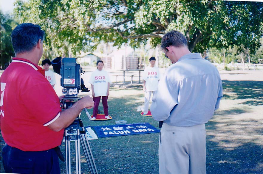 【明慧网2001年10月31日】 |  |  | | 环澳紧急救援的学员正在炼功洪法 | 10月22日,在昆省Toowoomba市接受地方报《THE CHRONICLE》采访 | 学员们与MARYBOROUGH 市市长交谈,市长签名以表支持 |  |  | | 10月24日,Bundaberg市当地电视七台对“紧急救援”车旅的学员进行了采访,并在新闻节目播出 | Bundaberg市,学员接受当地报纸《News-Mail》记者的采访 |