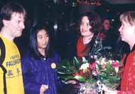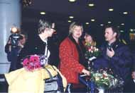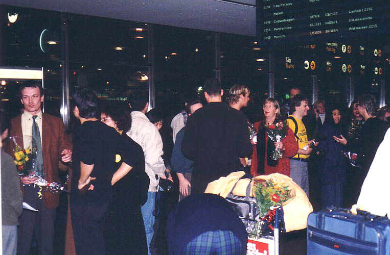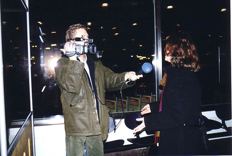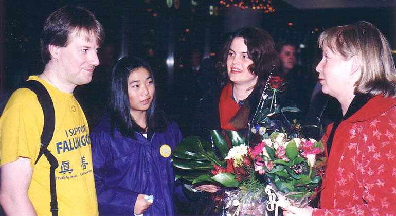 【明慧网2001年11月24日】21日晚9点,瑞典电视台现场直播了从中国天安门广场请愿后平安归来的八名大法弟子接受采访的热烈场面。次日,22日清晨,电视台又作了专题报道。八名瑞典人走上天安门广场为中国受迫害的法轮功学员请愿事件和相关报导在瑞典反响巨大。瑞典学员途经丹麦转机时,也受到哥本哈根学员的热烈欢迎和丹麦媒体的采访。