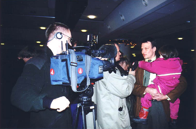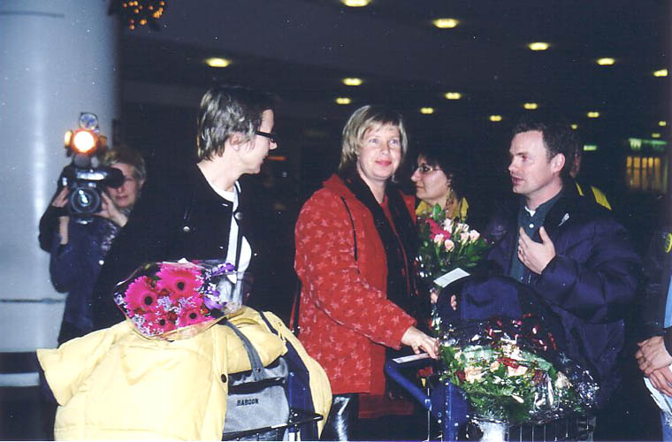 瑞典电视台现场直播平安归来的八名瑞典大法弟子(图)