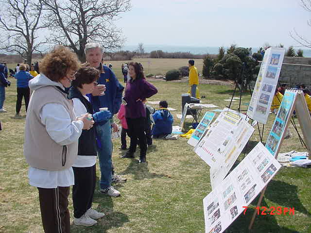 【明慧网2001年4月12日】 4月7日,康卅的十几家太极气功派系的老师及两三百名气功爱好者聚集在风景如画的海边公园Harkness State Park共同庆祝第三届世界太极日。我们康卅与几位来自纽约卅与罗得岛的学员应邀参加了这项活动。