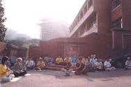 此次学法期间,碰巧明慧网编辑部的文章《发正念》发表,于是在隔天的晨炼中,千名大法弟子,一起在上午5点、6点、7点,在这三个时间内,和全世界大法弟子一起发正念。在思想中铲除三界内破坏大法的一切邪恶。 场面壮观殊胜,充满大法纯正慈悲的力量。许多新学员也为自己也有幸能一同参与这一刻感到无比幸运与感动。五点整时,整个一片草坪上整齐有序地坐满了大法修炼者,安安静静地,每个人心中都知道自己要做一件神圣的助师正法的事。在那几分钟只有纯净的意念,在这一刻中草坪上一千名弟子和全世界上亿的大法弟子一起发出正念。让这次集体学法,发挥更深一层的作用。 剑潭边 这里有一个传说。郑成功有一天来到剑潭,正要渡河时,忽然潭底有一只千年鱼精作怪,狂风大作,白浪滔天,部队无法上船,郑成功便取出配剑,投入潭心,将兴风作浪的水怪击杀后,立即风平浪静,军队才安然渡过。从此这里便称作「剑潭」。 在六点、七点发正念时,部分学员围着剑潭。湖上两只鸭,优游着,潭里的鱼,似乎平静地朝着水面摆动,突然,潭中的喷泉涌出一道水柱,可是水面却平静无纹,太阳从东方升起。事后知道郑成功曾在此除恶的故事,更是倍觉振奋。 一位学员写的心得 她说:大家看着那篇「发正念」时,许多人不由自主地流下了眼泪。想想,全世界一亿多位大法弟子,共有一位伟大慈悲的师尊,共修一部万年不遇的大法,共同背负着神圣庄严的历史使命,兑现贞洁的誓约。一亿多个大法粒子,在同一时间,虽然分散世界各地,但那股正念正信的心,凝聚在一起的威力却是何等的强大!大家共同默念「法正乾坤、邪恶全灭」,这该是多么殊胜辉煌的一刻! 当我四点四十分下来时,空气中没有任何嘈杂的声音,当时我还以为大家都还在楼上准备,没想到,一走下阶梯,整个大草坪几乎已坐满了一千多位大法弟子,大家静静地盘腿凝神等待着。天空这时尚未亮,黑黑的夜里,大法弟子凝聚在一起的力量却使得整个场面显得意外的纯明! 有的大法弟子紧张的说:「我昨晚一夜都没睡,就怕错过这一刻!」有的说:「我三点半就赶紧起来准备。」有些没有住宿的大法弟子四点便赶到剑潭活动中心和大家一起共襄盛举;有的大法弟子赶忙一个个打电话给他认识的弟子,互相叮咛提醒不要忘了这伟大的一刻!每个大法弟子都带着那颗对大法至诚的一片心! 四点五十五分,所有大法弟子盘腿结印,想着清除自己思想中不好的念头和外来的干扰,希望能让自己所发出的正念更加纯净、坚定!时间一到,大家单手立掌于胸前,在正念发出的那一瞬间,许多人都感受到那股强大的能量。师父在《大法弟子的正念是有威力的》中讲到:「其实大法弟子每个人都是有能力的,只是没在表面空间表现出来,就认为没有功能。但是无论能否在表面空间表现出来,动真念时都是威力强大的。」 在这五分钟里,每一个大法弟子,都是大法的一粒子,每个大法弟子在动真念时,都成为顶天独尊的神,集中所有的精力,一起铲除窒息三界内破坏大法的一切邪恶!这真是「威力无边的法的体现——强大的佛法在人间的再现!」在那五分钟里,时间彷佛是静止的,空气也停止了流动,但是,在另外空间里,真不知道那是怎样一种无法形容的壮观!在这样无坚不摧的正念场下,任何邪恶一旦进入,便会立刻湮灭殆尽,化为灰烬! 五点五分一到,大家睁开了眼睛,原本黑暗的夜空早已天清体透、大放光明!一千多位大法弟子没有喧哗,没有吵闹,又静静地分为两处,一处在剑潭活动中心的大湖边,一处在剑潭捷运站旁炼动功和静功,五点五十分、六点五十分到的时候,所有大法弟子又再一次地盘腿结印,窒息邪恶!在全世界一亿多个大法弟子的正念之下,苟延残喘的邪恶势力显得更加不堪一击,大法弟子的强大正念,震撼着寰宇世界,感动了天上人间!一位在场地周围负责摄影的大法弟子,此时更是被如此祥和宁静之场震撼得泪水涟涟。 活动中心人员的话 当我们前往剑潭活动中心接洽学法事宜时,那里的工作人员对「法轮功」并不了解,其印象也仅止于是一个被中国大陆禁止并镇压的团体。当他们听到将有一千多位弟子要来参加这次活动时,更是感到难以放心与掌控。 当我们第一天学法报到时,他们在柜台处安排了七、八位工作人员来帮忙配合,未料,一千多位弟子几乎都没有麻烦到他们。这些工作人员从原本的战战兢兢,到轻松地坐在位置上观看,大法弟子所表现出高尚自律的行为,让他们深感纳闷,并好奇我们到底是个什么样的团体?他们一位工作人员甚至跟我们说:「你们不是说有一千人吗?怎么感觉好像只有一两百人?」 吃饭的时候,一楼、二楼的餐厅座位原本多是弟子们的位置,但当我们学完法要用餐时,餐厅已有另外一个团体在吃饭了。我们大法弟子静静地排在门外等待他们吃完,其平静祥和地态度让工作人员感到意外和不好意思,并对着正在吃饭的团体频频催促:「请你们赶紧吃完,后面还有法轮功学员在等待着。」 大法弟子吃饭时也不敢浪费食物,即使大家都已吃饱,但看到桌上还有剩余的菜肴时,大家都主动地把食物吃完,并将桌面整理乾净。在所住的旅馆房间里,大法弟子也将房间整理的井然有序,并不曾给清洁房间的工作人员增添麻烦。这一切,都看在他们的眼里。 真善忍融入每个人心里 当两天的活动结束后,活动中心人员显得相当的依依不舍,并和