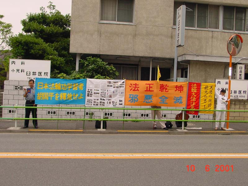【明慧网2001年6月11日】从这个星期开始,学员自发决定周六周日也到中国驻日本大使馆前"助师正法""铲除邪恶",呼吁立即释放包括日本学员胡国平以及高珊珊(日本人家属)在内的所有大法弟子。