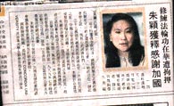 【明慧网2001年6月25日】迫于加拿大法轮大法修炼者、加拿大政府、加拿大议员、加拿大非政府组织、律师、校长、教授、教师、大学学生和其他各界民众的压力,迫于加拿大新闻媒介的客观公正的报道,中国警察当局不得不将被广东省警察在海关以绑架方式扣押的加拿大法轮功学员朱颍女士释放。在超过三十余天的失去自由之后,朱颍女士于六月21日安全返回加拿大。多伦多「星岛日报」,「世界日报」等中文媒介迅速报道了在蒙特利尔召开的新闻发布会的消息。朱颍女士的照片和她在新闻发布会上发言的片断,又一次向多伦多华人民众揭露了中国江泽民政治流氓集团对法轮功修炼者不计后果的镇压黑幕。