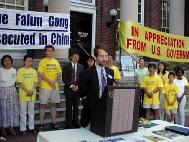 佛州车队在Fredericksburg市政府召开了新闻发布会7月16日上午,由佛罗里达州出发的紧急救援自行车队到达了离华盛顿一个多小时车程的城市-Fredericksburg。维州、DC和马里兰州的学员在Fredericksburg市政府召开了新闻发布会。Fredericksburg市的市长Bill Back应邀出席了新闻发布会并发表了讲话,赞扬法轮功学员为坚持信仰而付出的可贵精神。其间,几位参加骑车到DC活动的法轮功学员在发布会上呼吁紧急救援受迫害的中国法轮功学员。这是他们发起这次活动的主要目的。两家媒体进行了现场采访。  |  |  | | 风尘仆仆的自行车队到达了维吉尼亚州的Fredericksburg市 | 四位参加紧急救援-骑车到DC的法轮功学员在Fredericksburg市政府楼前合影 | Bill Back市长参加法轮功学员举办的新闻发布会 |  |  |  | | 骑车到DC的法轮功学员在新闻发布会上发言 | Bill Back市长在新闻发布会上赞扬法轮功学员 | 新闻发布会前的集体炼功 |  |  |  | | Bill Back市长接受学员赠送的大法书籍 | 媒体采访 | 到DC去,车队又踏上了最后的一程 |