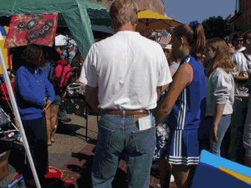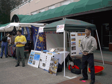 【明慧网2001年9月18日】在SOS步行者经过该市后的一个周末,我们再次来此洪法。管理摊位的工作人员告诉我们当地报纸对法轮功的报道。在拥挤的人群中,有缘人寻找着大法。有一位当地人在我们摊位徘徊几次。一位学员注意到了这情况,当他迎上前去的时候,那位当地人便与之攀谈,她不仅对法轮功感兴趣,并说她想帮助我们。我们意识到,获得当地人的帮助和之支持在边远地区洪法中十分重要,关系到将来的深入洪法。 魁梧的西人学员是人们注目的对象。孩子们喜欢找他学功。也有人挑衅性的要看他双盘打坐,人们找他咨询有关大法的事。有缘人找他希望帮助举办当地的法轮大法学习班。 大家不间断地连续练功和发正念。西人学员说不仅他感受到了强大的能量,甚至一些常人也感受到了,并想进一步了解。更有几个练禅宗的人路过,席地双盘而坐,加入炼功,并希望对法轮功更多了解。 |