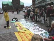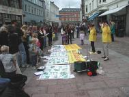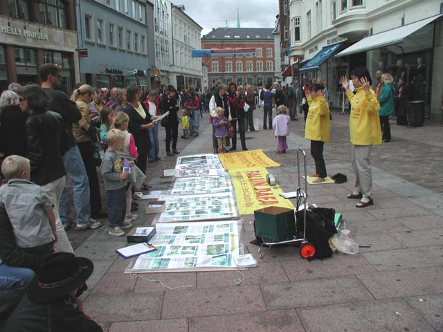 【明慧网2001年9月20日】8月30日-9月2日,是丹麦第二大城市奥尔胡斯一年一度的民俗节日。我们大法弟子相约来到这里,向善良的人民讲清真相,揭露邪恶,紧急呼吁与征签。  在节日期间,奥尔胡斯市民一反往常,走出家门,投入各种活动中。这次的洪法活动,我们遇到的人比哪一次都多。人们虽然在喜庆的节日里,当他们看到这一幅幅大法弟子遭受残酷迫害的照片时,仍然不约而同地停下脚步,仔细地观看和阅读,然后,主动在征签表格上签字,有时,等待签名的人排起了长长的队,几本签名本都忙不过来。 在洪法活动中,有几件小事触动我的心弦,久久不能忘怀: 有一队黑人组成的打击乐队,在我们洪法地点近处演奏,这喧闹声几乎盖住了我们的炼功音乐,不免给我们的炼功演示带来一些干扰。他们说,他们在这里已经演奏了十几年了,这几天每天都要在这里。我们把这喧嚣声当作心性的考验,不为所动,同时又善意地向他们发SOS传单,与他们交谈,告诉他们法轮功的真相。到了第二天,发现这群人主动挪换了地点,避开了干扰我们。为我们创造一片宁静的场所。我看到了他们的善良与同情,和无声的支持。 有一位上了年纪的妇女,她站在弟子们被迫害与残杀的图片前,一张张地看著。然后她哭泣着,签了她的名。还有一位妇女,当我向她讲述覃永洁的故事,故事还没有讲完,她流着眼泪说:“不要再讲下去了,我的心无法承受这样的痛苦。”她签下了名字,擦着泪,默默离去。 还有一位小姑娘,她认真地问她的妈妈发生了什么事。那位善良的妈妈痛心地向女儿解释发生在那遥远国度里的悲惨而又残酷的事,小女孩用她那稚嫩的笔触签下了自己的姓名。 每当我遇到这样的情景时,心中总是被他们的善良强烈地震撼。我不由地想着我的被邪恶毒害和蒙蔽的同胞们。丹麦人民的善良与正义,与国人的冷漠与麻木,对比太大了。我深切地看到了人们道德沦丧的后果。我的同胞们,他们中许许多多人,也曾经善良,正直,富有正义和同情,从什么时候开始,他们变得那么冷漠,自私?在暴政的高压下,人们渐渐地蜷缩在自己舒适的小窝里,不再关心别人。在看到别人的痛苦时,不仅无动于衷,甚至幸灾乐祸。 经历过太多的欺骗与愚弄,付出过几代人的教训,很多华人不敢相信,这个世界上有好人,人间还存在着正义和良知。在丹麦人敞开单纯的心怀,倾听我们的讲述时,中国人却睁大了怀疑一切的眼睛,面对真诚,却硬是要从中找出“欺骗”的蛛丝马迹来。在人们冷漠与自私中,我看到那被层层污垢包裹着的心中的伤痕。人们在迷茫中,在苦难中,丢失了他们生命中最可贵的本性。 回想在我得闻宇宙大法之前,我的心性又何尝不如此低下,道德沦落? 在为国人痛心,为丹麦人民的善良欣慰的同时,我又每每为把我拉出泥潭的师父的无边洪大的慈悲流泪不止。是啊,师父的苦渡,苦口婆心地把一个个迷茫中的生命唤醒,在他们心中注入“真,善,忍”,师父个中的承受,又岂是我们弟子能感受万一? 现在世上还有这么多与我当初一样的人们,他们的善念被泯灭了,正义被忘却了,他们的本性被污染了,但是他们还是师父珍惜的生命。用大慈悲去救度世人,唤醒世人的良知与善念,需要我们去付出和承受。但是这点承受,与师父为我们的承受,为世人的承受,为宇宙一切众生的承受相比,又何尝能够挂齿? 想象那一天,真相大白于天下之时,随着弟子们的圆满,还有许多生命,会在“极苦的偿还历史上所欠下的恶业中消去罪恶”(《除恶》),还有许多生命,将打入层层销毁的痛苦中。我的心中沉沉的,曾有过对圆满的执著、对法难结束的期盼,顿时消失。如今师父为弟子留下的时间,每一天,是为了我们的圆满,也是为了多救度一个众生。想到此时,我心中的杂念,混身的疲劳,就会一扫而光。珍惜今天的每一天,每一时,每一刻,把自己的全身心溶入正法中,“发心度众生,助师世间行”。让自己再精进一些,做得再好一些,多唤醒一份良知,多救度一个生命。