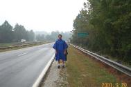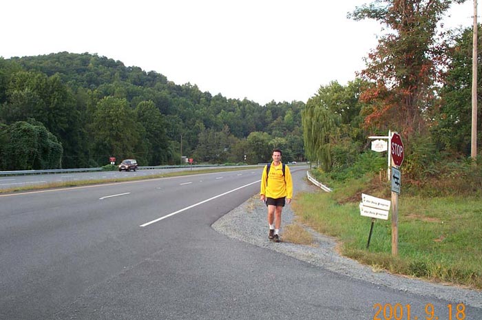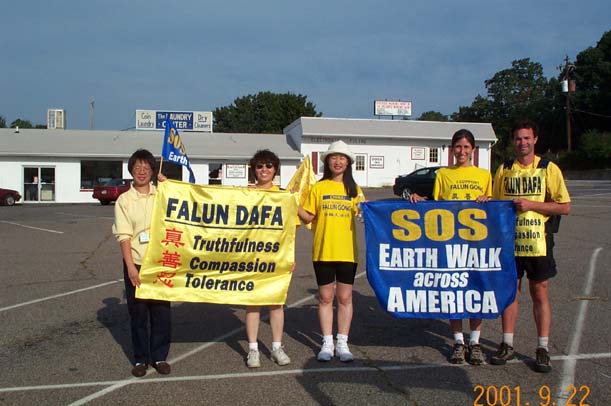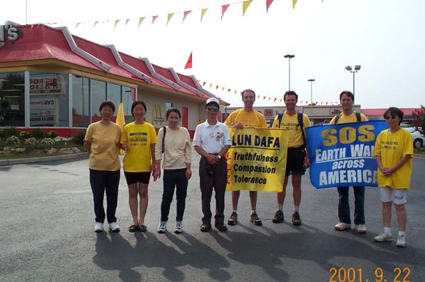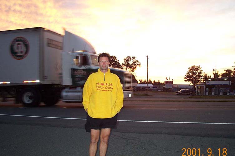 | 【明慧网2001年9月25日】9月18日。再上征程 经过两天的休整,9月18日一早5:15,戴卫又踏上了横跨美国大陆的征程。我们先驱车送他到接续点,好接着往前走。戴卫说,虽然再往后有一小段他已经经过了,但那是前两天为参加记者招待会坐车通过的,不能算。他得回到上次步行的终点再接着走。一步一步都得是自己走过来的才行。真不愧是修炼的人。 终于找到了那家加油站。上次就是走到这的,今天还从这接着走。在一棵树下,他静坐片刻,再立掌发正念。 终于他又向西方迈出了坚实的脚步。 晴空万里。阳光照耀着他,照耀着他前面的路。 一步一步,是那么坚实,每往前一步,就觉得向北京更近了一步。 一路上,他一边走一边听着李老师讲法的录音,脚步迈得更坚实。昨天,他还听中国功友给他讲西天取经的故事。他知道,漫漫征程上,会有曲折,就象这两天来他碰到的种种干扰,每一次表现出来,都是阻止他再次起程。可这一切现在想想都这么渺小,这么不值一提。车辆一辆辆从身边疾驰而过,而在路上步行的却只有他一个,但他真实地感到身边有佛道神在与他同行,他心里充满对师尊的无限感激。一天中,他不知道发了多少次正念,只觉得他走过的路,光明一片。 途经维州大学,他见到了一位功友。有几分感动,彼此似曾相识。 告别了功友,继续西行。 山里,循着路标,准备去一家教堂借宿。敲了敲门,没有动静。无人。今晚就睡在教堂边的草地上吧。 晚间,山间静谧异常。他想想自己修炼以来一直近似于独修状态,隐约的记忆中,似曾在前世是修道家功的人。修炼后,心变得打开了很多。想一想,也很有意思,以往有很多事,都象为今天的步行做了准备。 炼完一遍动静功,一天隐隐的疲劳感消失了。 又拿起老师的书。 “我真是这世上幸运之人。”他想。 夜深了,山中树叶的哗哗声和偶尔的虫鸣伴着他进了梦乡。 今天是9月18日。我第一次写日记。自从9月3日来到华盛顿DC,时间飞快,我倍感充实。从国会前的新闻发布会后的10天里,我的执著和弱点一一暴露出来。步行相对来说,太简单了。我想到了《心自明》“放下执著轻舟快 人心凡重难过洋。”是到了轻舟过洋的时候了。我们一开始30人,后来减到15人,最后成为7个人。今天只有我和一位步行协助者。现在我们快速前进,打开一条脉络,在国内清理出一条路,从一个首都到另一个首都──北京。 珍贵的镜头:奶奶和孙子站在门后看着我们这些黄T恤经过。我走上前,奶奶打开门,那小男孩张大眼睛看着我,并接过传单。我对他说,我走了很远,想把它送给你。他象拿纯金一样收起传单。他一直目送我走远。 中国的镇压者们,如果你读到这儿,我个人要求你们停止镇压法轮功。美国人清楚你们对法轮功的作法是错误的,正义的宣判只是早晚的问题。你们孤注一掷的镇压是对人类最大的犯罪。当你残酷迫害无辜法轮功学员的真象大白于天下,这将永远是中国历史无法抹去的污点。为了中国,为了人类,让真善忍和平地照亮中国和世界上每一个向善者的心田。 随着时间,执行你们命令的人会越来越发现你们的命令和心愿是如此邪恶。随着时间,他们会越来越不愿执行你的命令。善恶有报。我们每一个人必须对自己的所为负责。再一次,我告诉你,为了中国,停止镇压法轮功。 9月19日。得法经历