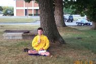 天气着实有点热,尤其到中午的时候,一度正午的太阳罩着他,头上也感觉很沉,脚步有些重,他忍耐着,真感到那种苦,无论是身体上,精神上。他知道这是一个阶段,在承受这苦之后,他突然感到头清爽了,象什么东西被拿下去一样,精神也振奋了。一天中,有多少次,他经历着这种重复。下午到了小镇,他痛吃了一顿,他太饿了。他记得师父讲过,“人找苦吃还找不到呢。”苦,“不就是苦嘛,咬住牙挺住,过后你看,什么都不一样了。” 晚上,去了一家中餐馆。他酷爱中餐,并十分确定自己前世做过中国人。他有个愿望——要在步行的路上去很多中餐馆,向更多的中国人讲清真象,这不很有意义吗?因为中国人的头脑里已经被谣言装了太多负面的东西。 想想自己得法的经历。那是一个晚上在公园里,他见到一个中国男人,他们交谈了几句。那个中国人告诉他,有一种中国的气功,免费教授,你要不要来参加。第二天早上,他就去学功了。其实这以前当他学瑜伽的时候,瑜伽老师告诉他要去公园练功,他并没有去。可这一次,不知为什么,一听,第二天他就去了。那个小伙子也是,平时从没有在晚上去过公园,只是这一天,一个信息告诉他晚上去公园,他就去了,他俩就见面了。 一切就象偶然中的必然。只衷心感谢师父的安排,促成这一切。 Amherst是个小城镇,他准备在这投宿。今天走了31英里。 借着教堂外的灯光,他读着《转法轮》。睡意上来,他克制自己,做了一套动功。写完日记,已是午夜时分。 这是一个雨夜。 9月20日。“去中国,告诉每一个人法轮大法好,是我的梦”