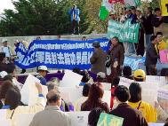 【明慧网2002年10月29日】江XX再次“暂时消失”,美国休士顿等地大约从纽约时间29日凌晨起结束了连日来的阴雨和阴霾天气,重新出现晴空;纽约晚间则奇怪地出现了雨夹雪天气。全球法轮功学员的正念除恶活动不但不会松懈,反而会继续持续。 江XX来访的前一天,2002年10月24日傍晚7时左右,美国布什总统的农场(摄影:林川)据中央社台北消息,结束在墨西哥亚太经合会非正式会议行程的“江XX专机”北京时间29日下午回到北京,江XX本人象前几次出访一样故伎重演,再次失去消息与经得起查证的行踪。“江XX专机”到京时,中共国务院总理朱镕基、国家副主席胡锦涛等人迎接,不过人大委员长李鹏及政协主席李瑞环两人日前既未送行,今天也未前往迎接,格外引起注意。    2002年10月28日,旧金山市十多个中外团体抗议江泽民访美“江泽民”28日美国之行的最后一站是旧金山,旧金山市市长布朗准备了盛大午宴。在此同时,近千名抗议人士在旧金山中共领事馆外,进行大规模示威游行。北加州台湾人社团、法轮功、国际特赦组织、北加州西藏协会、中国民主阵线、大陆民运人士等十多个中外团体,占据了中共领事馆附近的主要人行干道,高举大型布条看板,为不同诉求,举牌抗议。 许多开车行经游行路段的美国民众,也都以按喇叭的方式,表达对示威者的支持。