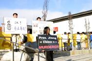 图片报道:法轮功学员在德州和平抗议江氏迫害
