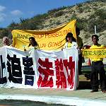 【明慧网2002年10月31日】美国之音2002年10月28日墨西哥城报导,星期日在墨西哥洛斯卡沃斯〔Los Cabos〕结束的太平洋沿岸国家首脑高峰会是在严密保安戒备中进行,限制了接近异议人士的机会。唯一一个设法在这个亚太经济合作会议地点完成抗议活动的团体就是中国的法轮功团体。 亚太经济合作高峰会上的法轮功抗议者报导说,因为地点偏僻,大多数在此类高峰会外面常见的示威者没有出现在洛斯卡沃斯。举行会议的各旅馆沿海岸排列,背靠人烟稀少的荒山。除此以外,旅馆附近的大部份地区禁止没有官方APEC证明的人出入。 报导说,不管怎样,大约150名法轮功学员还是来了,并沿着海岸边的公路举行了抗议,希望能够对来访的中国官员造成影响,包括中国主席江XX。但当江于星期六抵达时,墨西哥警察把巴士开到抗议者的前面。从洛杉矶来到洛斯卡沃斯的法轮功支持者乔什-麦曼叙述了当时发生的事情。“ 150人正在抗议,三辆巴士在中国车队到达时挡住了我们的视线。我们完全被遮住,根本无法让中国官员看到,”他说。 当被问及他是否事先知道墨西哥人会这样做时,他回答说,“不知道。我们什么也不知道。”麦曼先生还说抗议者们持有在那里抗议的许可。 报导还说,一些法轮功学员诉说当他们到达机场时,墨西哥入境官员影印他们的旅行证件,但大多数说他们在墨西哥受到了公正的对待。一名来自旧金山的法轮功学员黄凯利说,虽然他们基本没有接近高峰会议参加者们的机会,但他们确实有机会向当地的墨西哥人民解释他们来此的原因。“在了解了这场残酷迫害后,很多人都非常支持我们。他们认为这场迫害是不对的,是完全错误的。人们应该有信仰自由的基本人权,”她说。