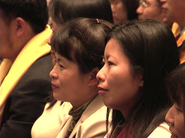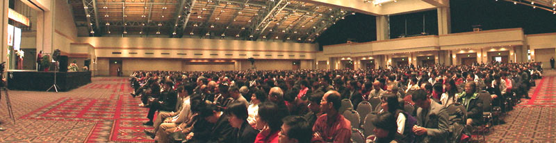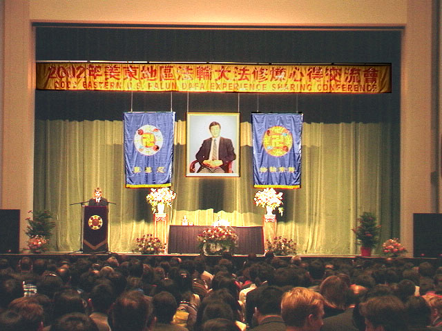 【明慧网二零零二年十二月一日】2002年11月30日,在美国宾夕法尼亚州费城临近唐人街的宾州会议中心(Pennsylvania Convention Center)举行了“2002年美东地区法轮大法修炼心得交流会”。美国东部的大法弟子,和来自美国其它地区及世界各地的两千名法轮功学员参加了这次盛会。下午两点多,师父亲临会场讲法。在全场学员的热烈掌声中,师父以两句脍炙人口的唐诗“两岸猿声啼不住,轻舟已过万重山”为开场白,告诉众弟子“迫害三年多了,邪恶已经使绝了招,大法弟子已经考验成熟了”,并给大法弟子们讲法约40分钟。  来自美国宾州、华盛顿、新泽西等地,和台湾、加拿大在内的十多位学员在法会上作了发言。华盛顿学员交流了在旅游点向中国人讲真相的体会;几位台湾学员分享了她们从不敢打到积极投入向中国大陆打电话讲真相的过程;“营救亲人”小组交流他们对营救活动在正法现阶段所起的作用的认识。美国学员还交流了在芝加哥和休士顿正法活动的体会。还有学员就如何处理好修炼、工作和生活的关系,更好地在常人社会中圆融和证实大法等诸多方面进行了交流。此次大会,费城地区的学员共收到了来自宾州联邦参议员阿兰-史宾特(Arlen Spector)、费城市长、宾州参议院,数位宾州众议员,新泽西州众议员,以及宾州各级政府的二十多项褒奖和贺信。 费城市的市长John F Street在他的贺信中欢迎所有参加这次大会的与会者,并在贺信中指出,“全世界的许多人都接纳这一能促进内心祥和,并且改善行为的法轮功。不管他生活在哪个国家,没有人应该因其个人信仰和因表达其信仰而遭到迫害。真心希望这个大会将传递希望,并为所有的人,使得这个世界成为更好的地方而作出贡献。”