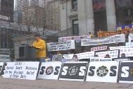 在中国城集体炼功,发正念 学员们炼功的祥和场面及“法轮大法”、“真善忍”、“CHINA:STOP KILLING”(中国:停止虐杀)、“讲真相无罪”等横幅和标语吸引了许多路人驻足观看,并和学员交谈,了解事实真相,还多人拿起相机,摄下了这珍贵的历史镜头。
