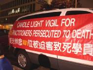 由于4.25是个特殊的日子,除了几位一年多来每天都到中领馆请愿的学员之外,来的人比平时多。特别是拉斯维加斯的七名学员,凌晨四点出发,驱车四个多小时,也赶到洛杉矶中领馆,参加了一天的活动之后,又连夜赶回去。 下午,一群西藏宗教人士来到中领馆抗议,几位跟他们一起来的西方媒体的记者看到正在请愿的法轮功学员,好奇地走过来,有的索取资料,有的为学员拍照、录像。 傍晚,许多刚下班的学员纷纷来到中领馆前参加请愿,人数一下子增加到七十多人。天色渐暗,大家点燃了蜡烛,半个小时发一次正念,铲除邪恶。夜幕下,点点烛光在微风中轻轻摇曳,倾诉着大法弟子对401位在残酷迫害中失去生命的同修的深深悼念,和大法弟子捍卫宇宙真理、慈悲救度众生的心愿。 (英文版:http://www.clearwisdom.net/emh/articles/2002/4/28/21451.html) |