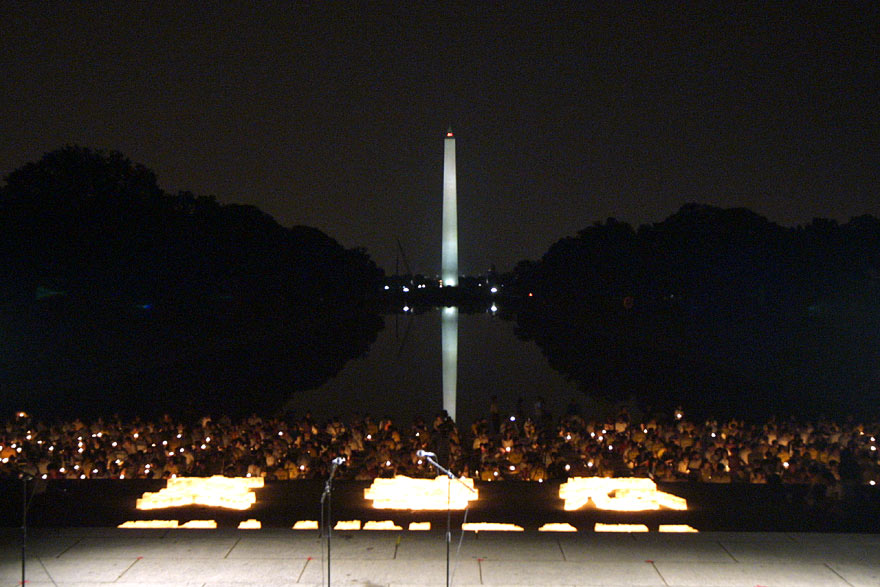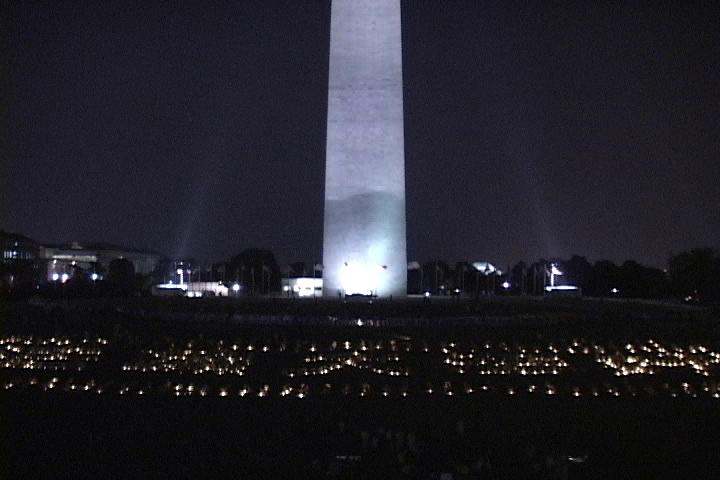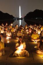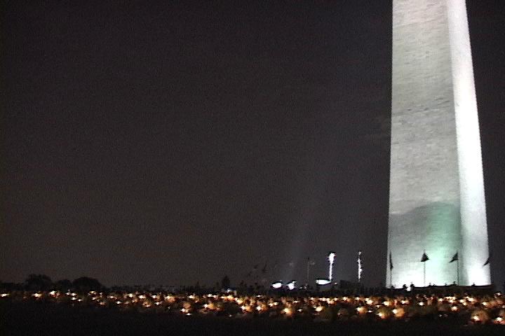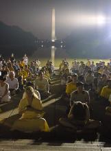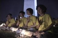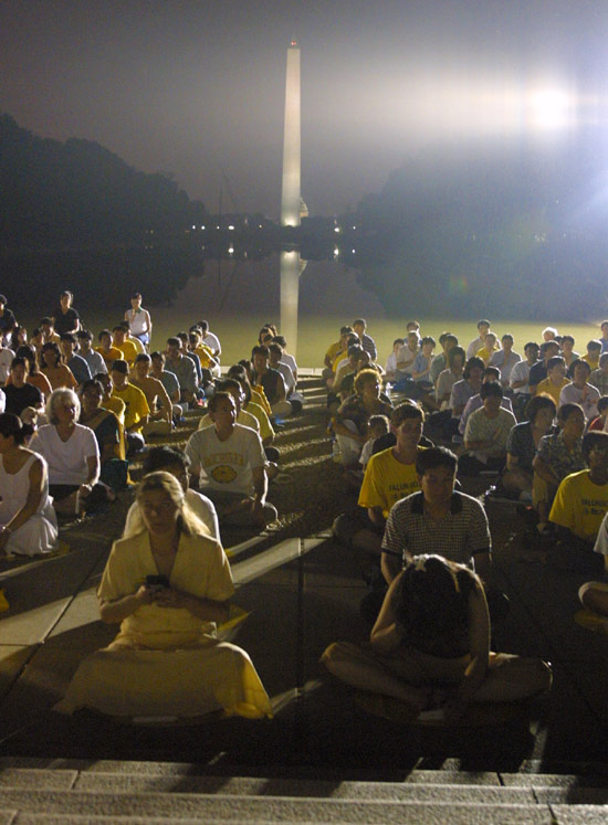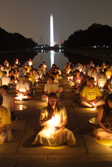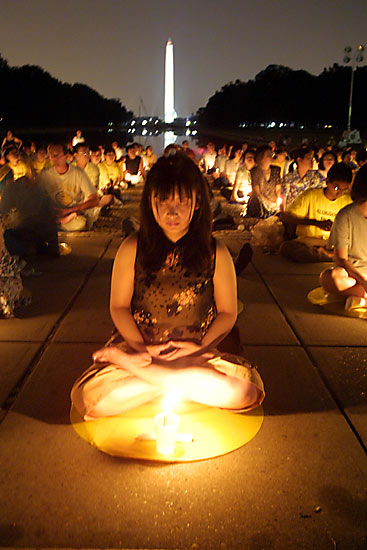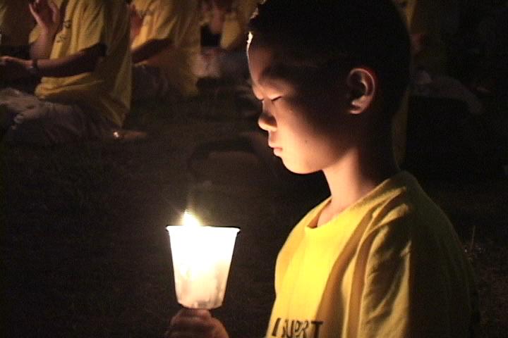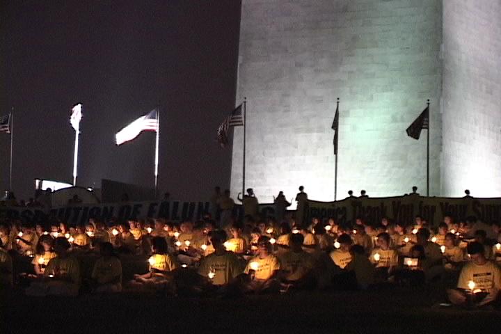(一)中国大使馆门前连续发正念 在这次为期四天的“一起来结束对法轮功的迫害”系列活动中,在中国大使馆前面的发正念、讲真相始终是整个活动的一个重要组成部分。 2002年7月20日,是中国江氏流氓集团倒行逆施、悍然镇压亿万法轮功修炼者三周年的日子。据有关部门的统计,至今已有十几万无辜的法轮功学员被非法拘捕或关押。为了呼吁世人早日认清江氏流氓集团的邪恶嘴脸,一起来停止和结束对法轮功学员的迫害,数十名来自全美各地的学员来到中国大使馆前面的天安门花园,学法、交流、发正念,以及讲真相。 据有的学员在交流中提到,在一天的活动中,大家不断地在学法、炼功、发正念,整个天安门花园里,非常安静,大家都感到特别安静、简单和纯净。有需要谈事情和交流的学员,都自觉地在天安门花园之外进行,大家都以法为重、以整体为重,极大地保证了发正念、学法的效果。晚上,学员们还进行了烛光悼念活动。 本次中国大使馆门前发正念活动,将持续四天,于7月23日结束。 (二)利用文化活动讲真相 2002年7月20日中午11点30分至下午4点左右,数十名来自美国、加拿大的擅长舞蹈、唱歌的学员,在华盛顿DC的介于美国国会山庄和华盛顿纪念碑的国会草坪(THE MALL),举行文化活动,以艺术形式向人们讲真相。这次活动的主题是“让我们经由真善忍,为和平而相聚”,受到了围观游客们的欢迎。 与此同时,还举办了章翠英画展和反映大法洪传的图片展,吸引了许多民众驻足观看,了解真相。 (三)“通向真善忍的里程”露天音乐会 2002年7月20日晚上9点,在美国华盛顿DC著名的林肯纪念堂,来自美国、加拿大、台湾等国家和地区的数百名学员,举办了一次别开生面的露天烛光音乐会。多名艺术家和有文艺特长的学员登台表演。有大合唱《如梦令·得度》、《登归途》、《请伸出你的援手》,独唱《烛光曲》、《赞歌-觉者的风采》,独舞《法光天际来》,以及钢琴独奏等等。 在演出结束的时候,全场合唱《法轮大法好》,声音高亢、气势宏大,展现了大法弟子不畏困难、蔑视邪恶的风采。整个音乐会于晚上11点左右圆满结束。 (四)华盛顿纪念碑前的大型烛光悼念活动 2002年7月21日,从晚上8点开始,来自美国、加拿大、台湾等国家和地区的上千名法轮功学员,在华盛顿DC的著名的华盛顿纪念碑下面,举行大型的烛光悼念活动,悼念在中国大陆江氏流氓集团镇压法轮功三周年以来,被折磨去世的几百名同修,同时希望引起世人的关注,呼吁全社会共同行动起来,尽早结束江氏集团对法轮功的迫害。据有关部门的统计,至今已有十几万无辜的法轮功学员被非法拘捕或关押。 上千名学员端坐在坐垫上,排成巨大的“法轮大法”四个大字,映着摇曳的烛光,吸引了众多来往行人的目光。在中国大使馆门前,另外一些学员也同时进行了烛光悼念活动。 这次烛光悼念活动一直持续到10点半左右结束。 (英文版:http://www.clearwisdom.net/emh/articles/2002/7/24/24444.html)