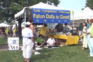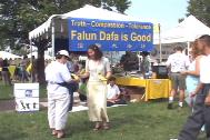 【明慧网2002年8月24日】在科罗拉多州每年八月份有一个龙舟节。龙舟节这一天,在位于丹佛城北面的思龙湖上,将举行一年一度的龙舟大赛。龙舟节对于科罗拉多州的大法弟子来讲,更是一个绝好的洪法和向科罗拉多州的人们讲清真相的机会。  今年的龙舟节是在八月十九日。这一天,有些学员清晨六点半就赶到了思龙公园,为这次洪法活动做了充分的准备工作。上午十时左右,可能听说将有三十多个队要参加比赛,来观看龙舟赛表演的人们如潮水一般涌进思龙公园。我们法轮大法的展棚虽然不十分显眼,但是那祥和的功法表演却吸引了无数的过往游客。 大家顶着烈日在展棚外向过往游客发送大法宣传资料,并向人们耐心地讲述着法轮大法和大法弟子在中国国内遭受迫害的真相。远处不时地传来观看龙舟比赛的欢笑声和龙舟节舞台演出时的阵阵掌声。可是,大家的心一点也没有被其所动,每个人都在专心致志地做着洪法的事。因为大家心里都十分清楚自己所肩负的历史责任的重大。经过我们大家的不懈的努力,不到下午四时,我们所带的英文真相传单全部发完了。 三年来,在大法弟子的努力下,法轮功在北美越来越广为人知,今天法轮功真相正在走入更多科罗拉多人的心里,为他们开创美好未来打下基础。 (英文版:http://www.clearwisdom.net/emh/articles/2002/8/25/25751.html) |