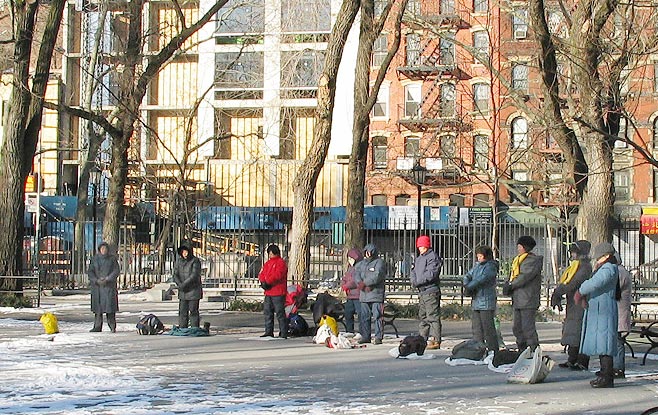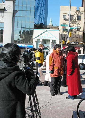 【明慧网2003年1月21日】1月18日,纽约法轮功学员在中国城举行营救亲属步行活动,进一步向广大市民讲清真相,呼吁共同制止江罗集团对法轮功学员的残酷迫害。
