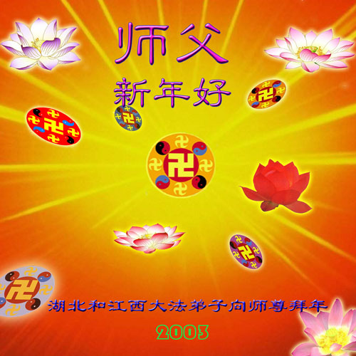 每逢佳节倍思亲,在华夏传统的辞旧迎新的节日之际,我们大陆全体大法弟子双手合十,向慈悲伟大的师父致以最崇高的敬意,并按传统习俗给师父拜年:师父过年好! 1992年5月大法传世,到1999年的7年中,法轮大法遍及了世界几十个国家和地区,修炼者达一亿之众,大法净化着世人的心灵,归正着末劫人类的道德,救度着宇宙中的一切众生;可是宇宙旧的势力在1999年7.20悍然将全宇宙的败物指向正法,邪恶压顶,恶龙硫火,在光明与黑暗、正义与邪恶的较量中,师父您用巨大的付出为宇宙众生承受着巨难,开创了大穹史上法正乾坤的崭新历史;从此,在师父的精心导航和呵护下,千百万大法弟子冲破压力,在最大限度失去一切中走出来讲清真相、证实大法、救度众生。三年半的时间里,邪恶在正念中被逐渐清除干净;众生在讲清真相中得到广泛的救度;大法弟子在助师正法的坚定、清醒与成熟中走向圆满。 忆往昔,历数正法进程的步履,我们永生难忘;展未来,肩负救度众生的使命,我们信心百倍。我们懂得“正法时期大法弟子”称号的份量,因为当正法弟子的称号赋予我们时,历史的重任也同时赋予了我们;我们知道如何走好自己的每一步,因为在我们的身上聚焦着宇宙众生的目光和希望。请师父放心,在助师正法的最后岁月里,我们会格外珍惜师父用巨大承受换来的每一天。学好法、发正念、讲真相,用神的正念正行圆满自己的史前大愿,向师父交一份合格的答卷。 大陆全体大法弟子敬上 2003年1月22日 长春大法弟子给师尊拜年