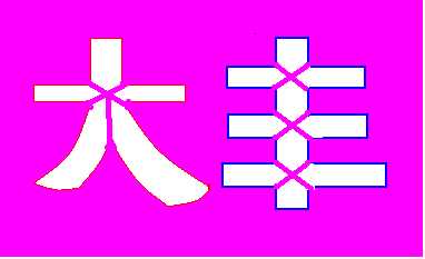 二、大条幅,用计算机打印的空心字,按照方格比例(美术绘画常用),可随意放大,直接将字用裁衣画粉画在布上,填上颜料即可,写出来的字不易脱落,不怕水。1、在一张透明塑料板上按空心字的大小画一长方形,将长、宽各分成10等分,即为原字模方格。2、在牛皮纸(可以反复使用)上按需要的字(注意布留幅边)的宽、高画一长方形,各分10等分,为放大字模方格。将空心字放在原字模方格底下,将布放在放大字模方格的上面,按照原字模方格的笔划对应画在布上,稍加修饰,即为放大空心字。如放大字模示意图。写条幅时,将条幅两端绷紧、架空(节省颜料、字体美观),用美术排笔蘸适量颜料填写两次即可。(广告色对白乳胶9:1,瓶装广告色倒掉2/3上面的水,保证浓度)