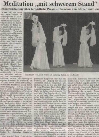 【明慧网2003年12月11日】据卡姆日报11月10日报道:上周六,一波来自亚洲的气息拂过市府大厅。在这一次宣传活动当中,法轮大法(也称法轮功)修炼者要化解存有(对法轮功)的成见并纠正意识中被误导的消息。演出和当事人的经历陈述使晚会成功。